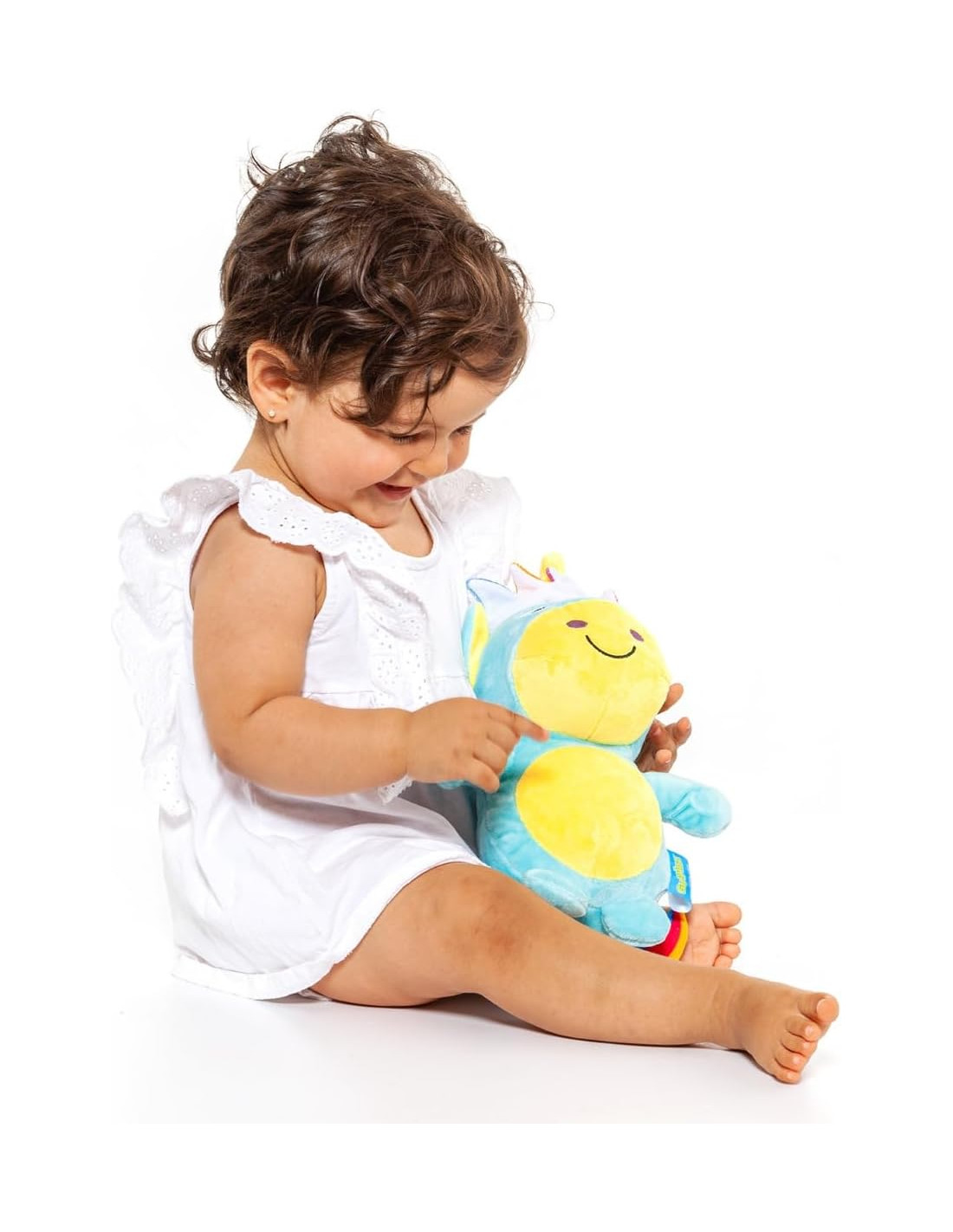 ????PELUCHE PARA DORMIR?Es de cuerpo suave y esponjoso, y se ilumina su barriguita y va cambiando de color. Cuenta con 3 melodías diferentes que se activan cuando aprietas una de sus manitas y enciende luces relajantes cuando aprietas la otra.