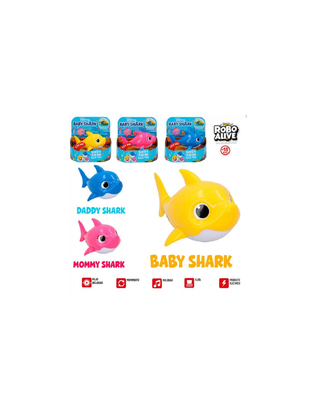Color BabyExisten diferentes modelos. Se venden por separado. Se surtirán según existencias. ¡Los juguetes Baby Shark ya están aquí! Canta y nada junto a Baby Shark, Mommy Shark o Daddy Shark, la familia de tiburones más famosa de YouTube. Al entrar en contacto con el agua los juguetes flotantes se activan y mueven su aleta trasera mientras suena su pegadiza canción. Chapotea junto a ellos, ¡divertidos y educativos!