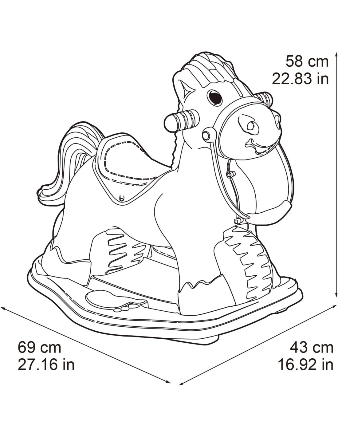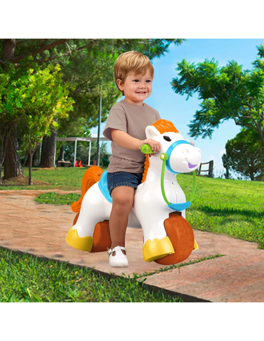 Incluye: 1 Ponyfeber 3 en 1 con base balancín y sonidos.