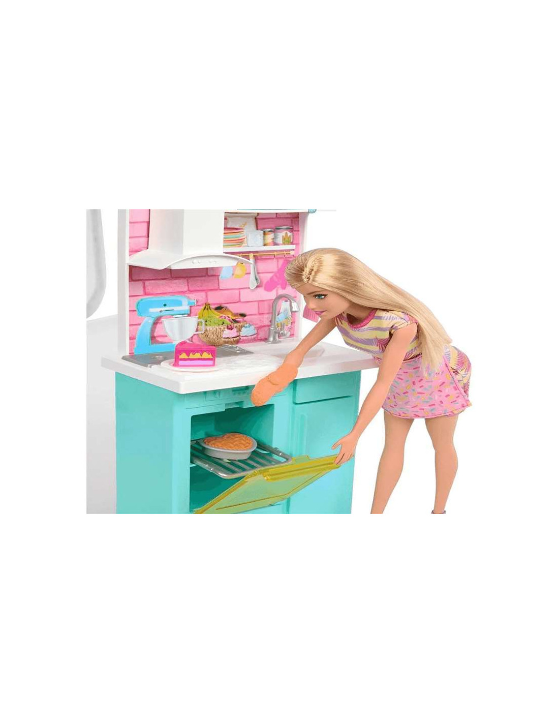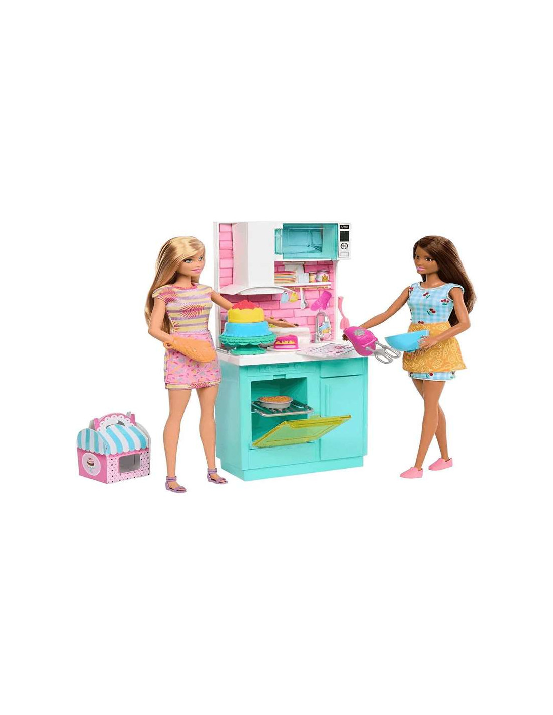 Mattel¡La diversión está servida con el set Barbie Horneando Pastel de Cumpleaños! Este completo conjunto de juego invita a peques a adentrarse en el mundo de la repostería mientras crean dulces historias llenas de imaginación. Incluye dos muñecas Barbie listas para cocinar con sus coloridos outfits, además de una cocina equipada con horno y microondas con puertas que se abren, y un amplio espacio para preparar recetas deliciosas. ¡Todo preparado para celebrar la mejor fiesta de cumpleaños! Con más de 15 accesorios, como cupcakes, tarta, utensilios de cocina y decoración, los peques podrán mezclar, hornear y decorar sus propios postres mientras inventan historias y comparten momentos de juego. ¿Por qué encanta este set? Porque combina creatividad, juego en equipo y situaciones del día a día como cocinar y celebrar, haciendo que cada momento de juego sea único y divertido. Beneficios para el desarrollo Favorece la imaginación, el juego simbólico y la socialización. Además, ayuda a desarrollar la motricidad fina y la creatividad a través del juego de imitación. ¿Qué incluye? Incluye 2 muñecas Barbie, cocina con horno y microondas, delantales, guante de horno, pastel de 3 piezas, cupcakes, tarta y múltiples utensilios de cocina. Edad recomendada: A partir de 3 años. Preguntas frecuentes ¿Se pueden abrir los electrodomésticos? Sí, el horno y el microondas cuentan con puertas funcionales para hacer el juego más realista. ¿Es un buen regalo para cumpleaños? Sí, es un set ideal para regalar en cumpleaños y fomentar el juego creativo relacionado con celebraciones.