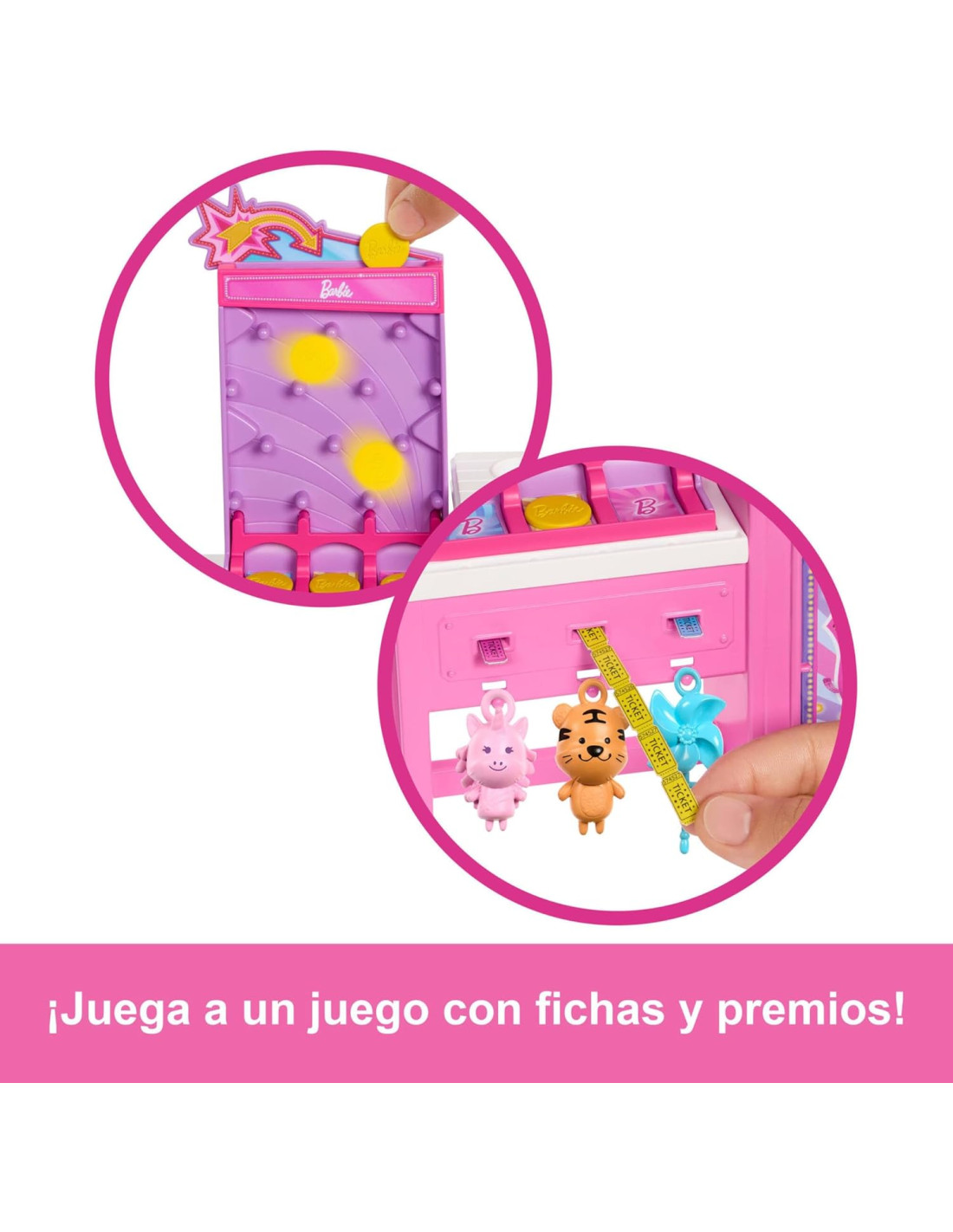 Incluye más de 20 accesorios, como un juego que funciona con fichas y premios. Los peques pueden meter una ficha para ver si ganan un premio y luego elegir un cerdito, un tigre o un molinillo de viento.