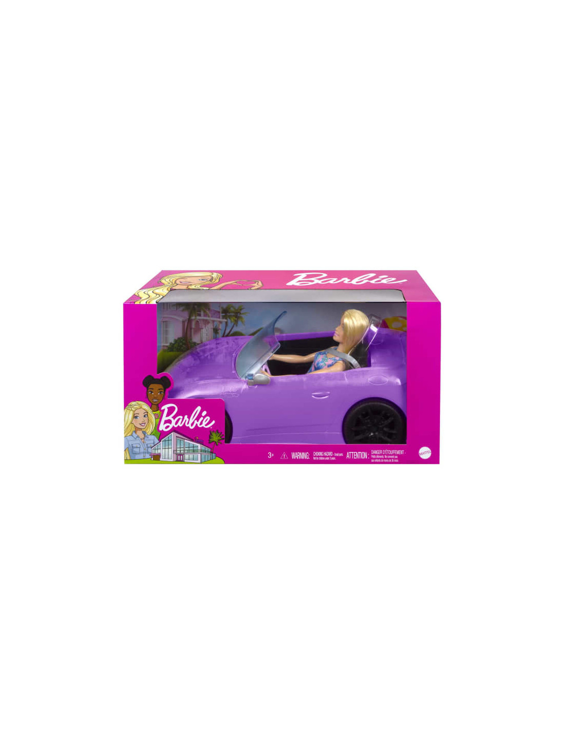 ¡Las niñas podrán acelerar hacia la aventura con la muñeca Barbie y su descapotable morado! Este conjunto de muñeca y coche incluye un moderno deportivo descapotable con dos asientos y detalles realistas, como una rejilla y ruedas de color negro mate, cinturones de seguridad y detalles plateados. Los divertidos toques con el estilo característico de Barbie incluyen una placa de matrícula personalizada y la emblemática silueta de Barbie. Con su vestido moderno con un estampado de palmeras y unas elegantes sandalias blancas, la muñeca Barbie está lista para vivir cualquier aventura con la que las niñas puedan soñar. La muñeca no puede tenerse en pie por sí sola. Los colores y la decoración pueden variar.