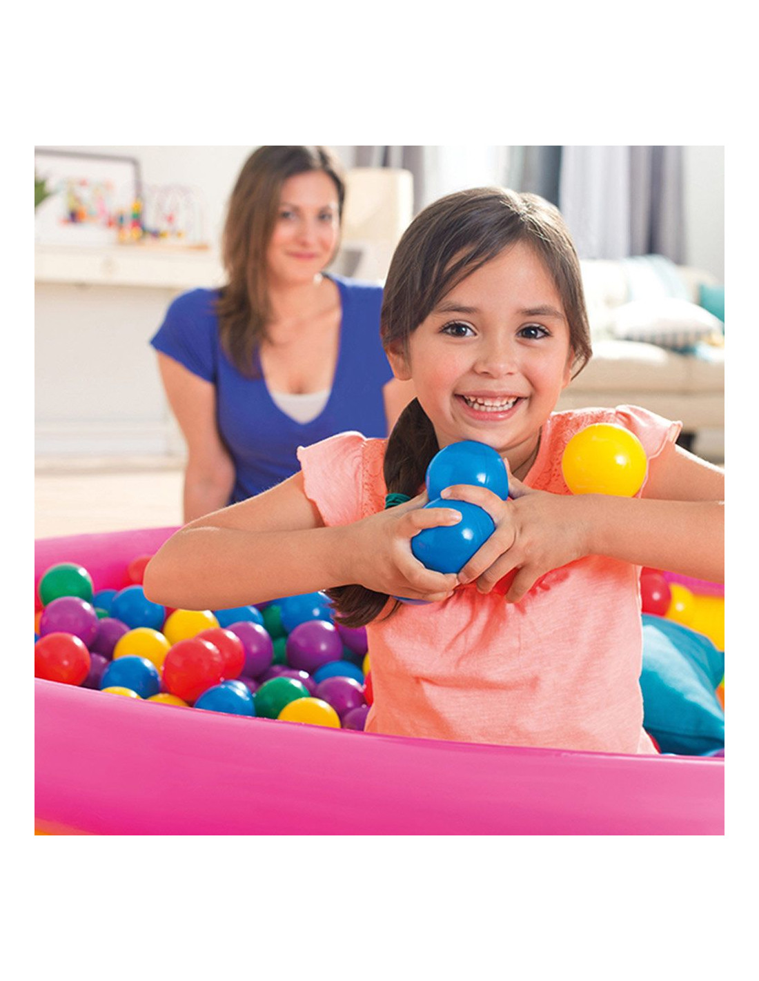 ¡Cuántas bolas! Bolsa con 100 bolas de 6.5 cm de diámetro y 6 colores diferentes. Puedes disfrutarlas colocándolas en la piscina, en el arenero, pero también solas.