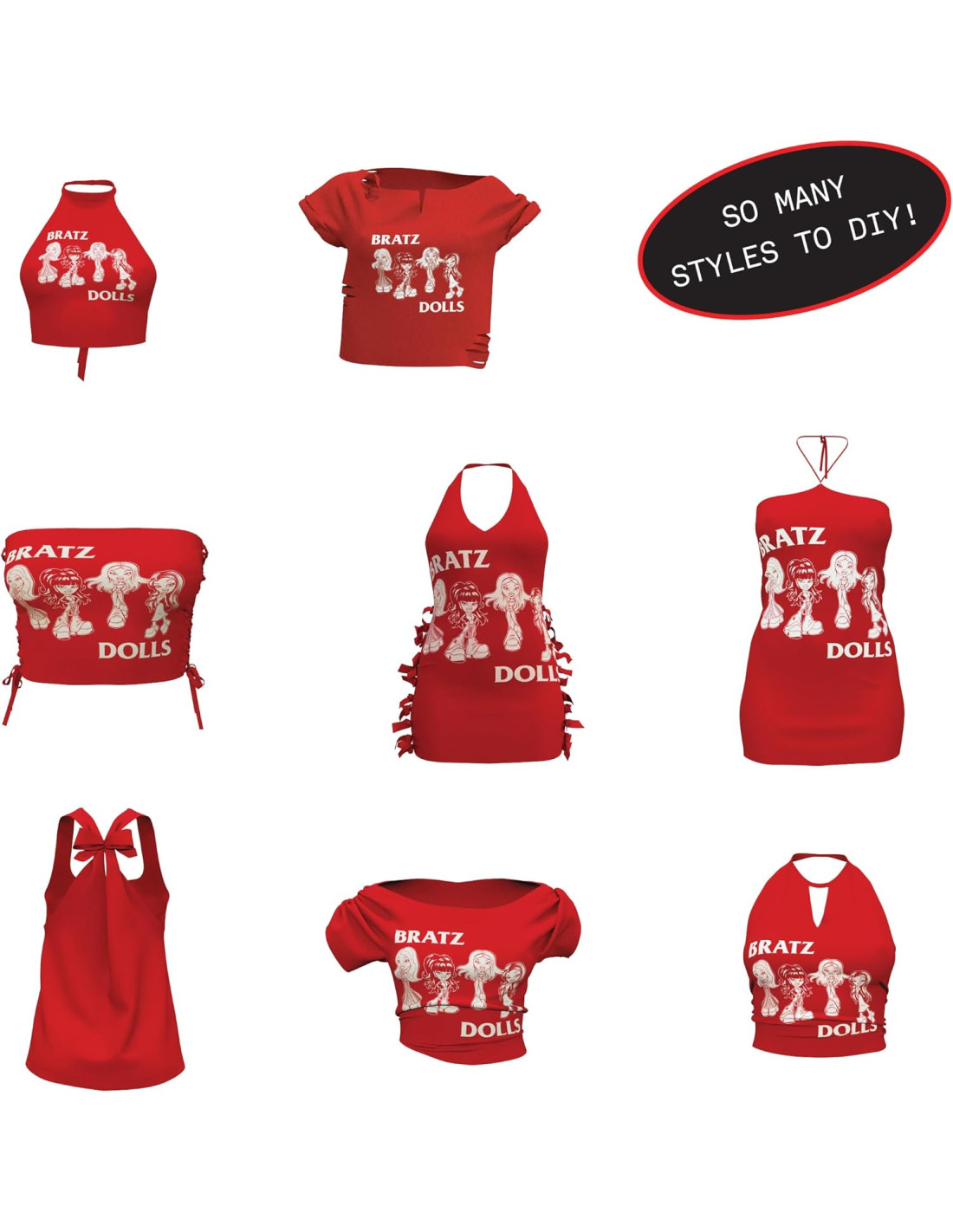 INCLUYE: 1 muñeca Bratz Stylin´, 1 camiseta cami, 1 camiseta abotonada, 1 falda, 1 bolso, 1 par de gafas y 1 cepillo. Además, una camiseta gráfica XL tamaño adulto para que la personalices y la combines con tu muñeca