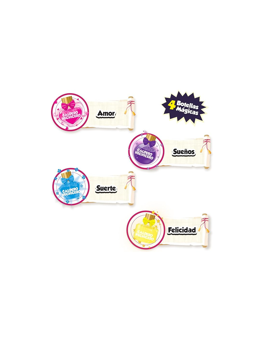 4 diferentes temáticas: Amor, Sueños, Suerte y Felicidad. Cada una de ellas con un olor mágico te atrapará.