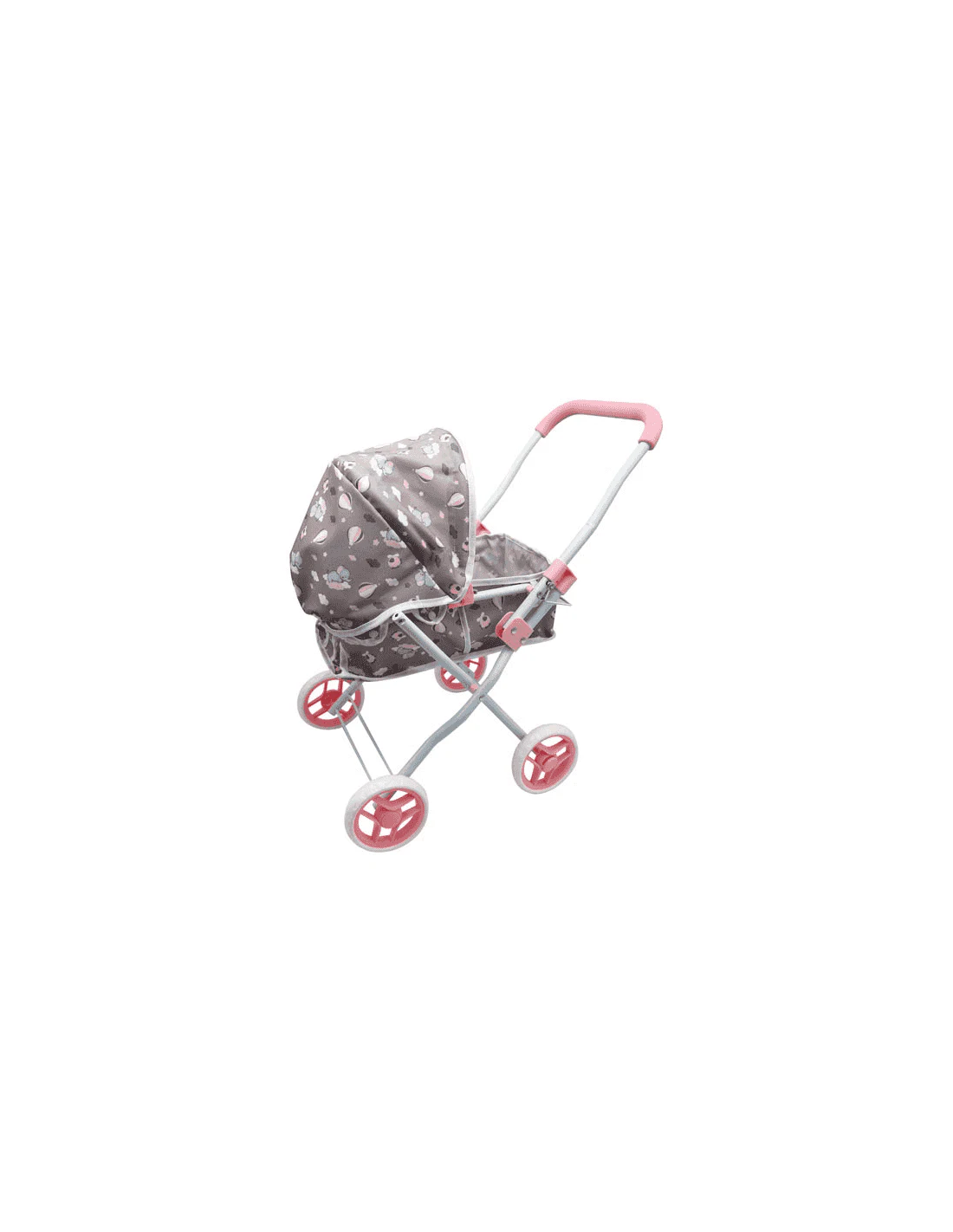 Se trata de una silla de paseo de juguete tipo carro plegable con un precioso estampado de nubes en tonos suaves. Cuenta con estructura metálica ligera, capota ajustable y ruedas dobles delanteras para una mayor estabilidad. Su sistema de plegado permite guardarlo fácilmente cuando termina el juego. El producto incluye el carro completo y el textil decorativo. Los muñecos o accesorios mostrados en las imágenes no están incluidos.
