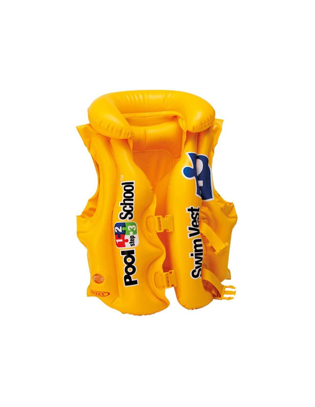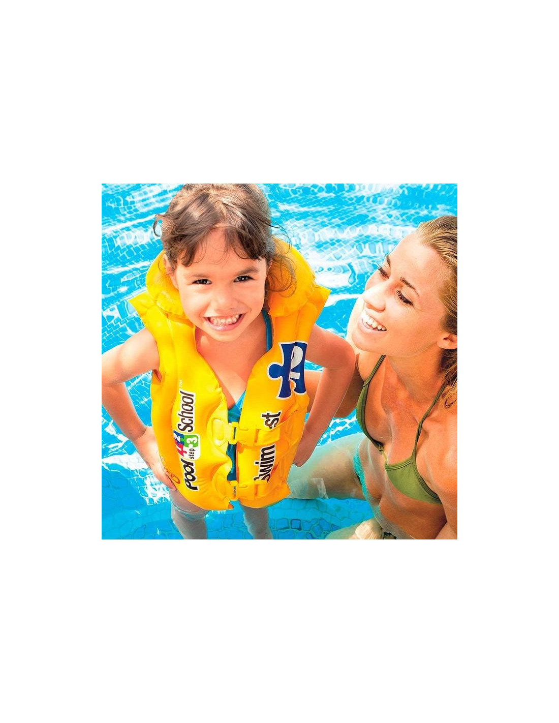Lilo y StitchTus peques podrán disfrutar del agua seguros con este chaleco hinchable INTEX. Mide 47x50 cm, soporta de 18 a 30 kg y es para niños de 3 a 6 años. Diseño de camiseta para brazos libres y refuerzo en el cuello para mayor comodidad. Cuenta con 2 hebillas ajustables con desbloqueo rápido para quitar y poner el chaleco fácil y rápido. Tiene 3 cámaras de aire para mayor seguridad. Modelo amarillo.
