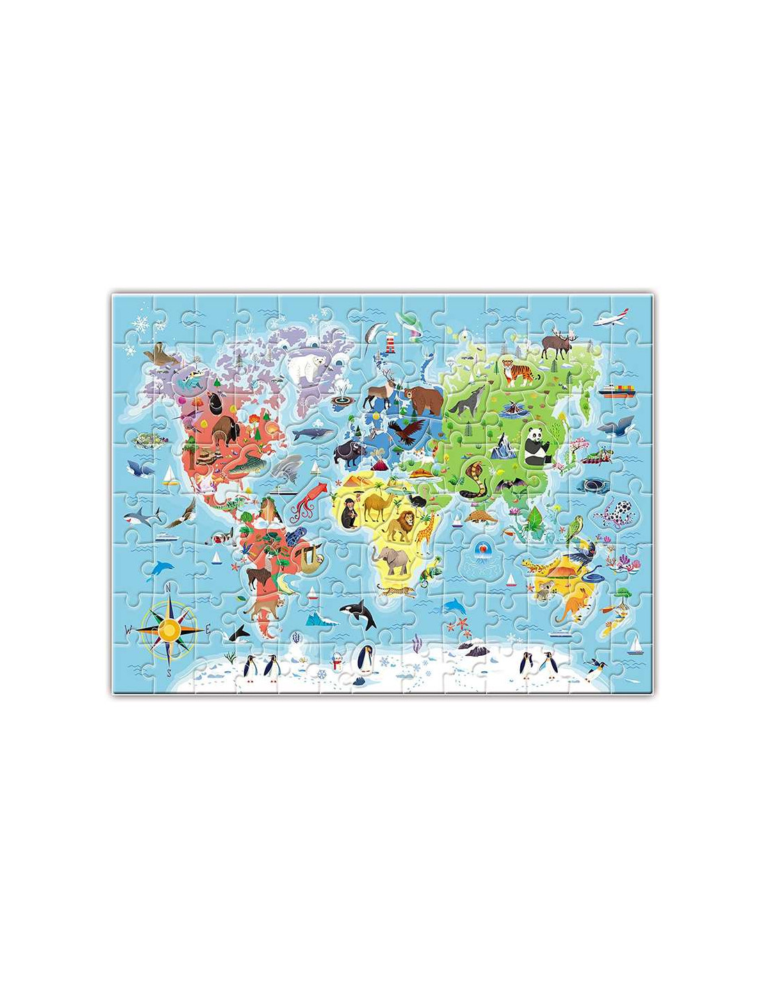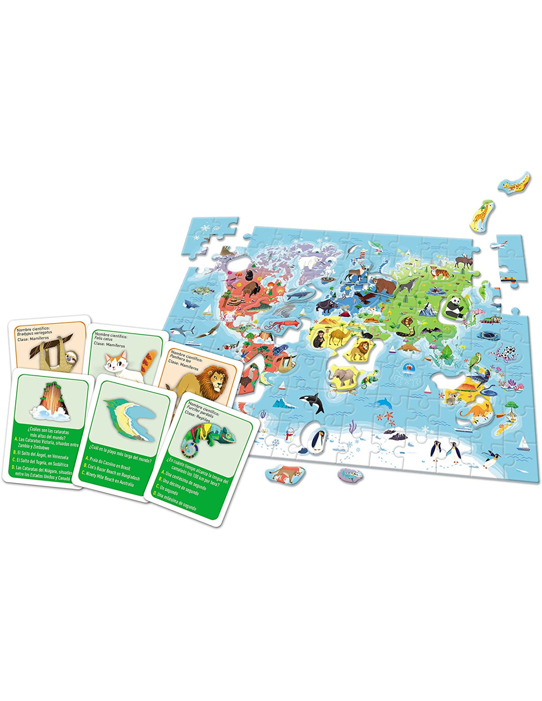 El juego contiene un puzle que representa un planisferio con las principales características físicas, las siluetas de los animales e imágenes de la vegetación típica de los distintos hábitats