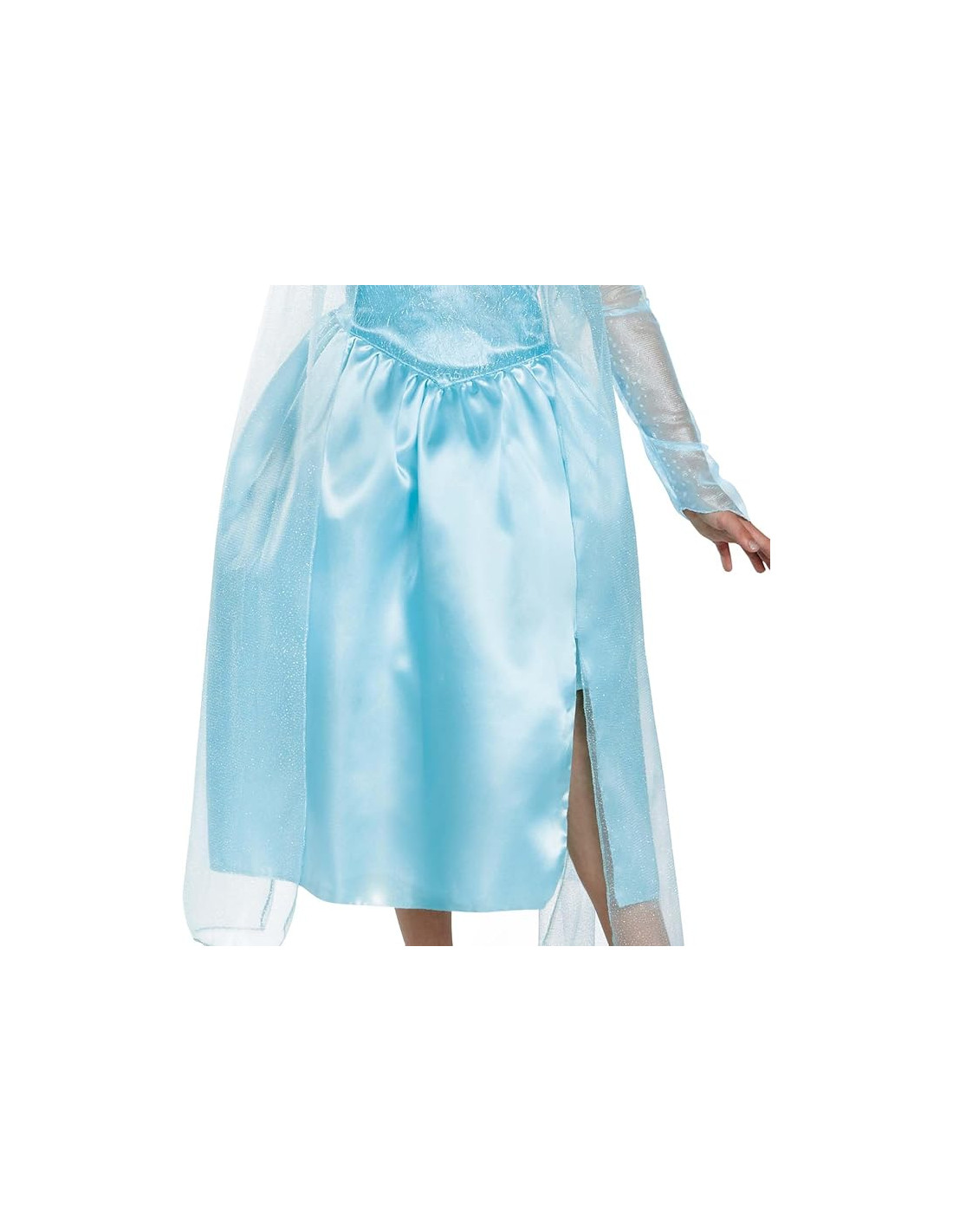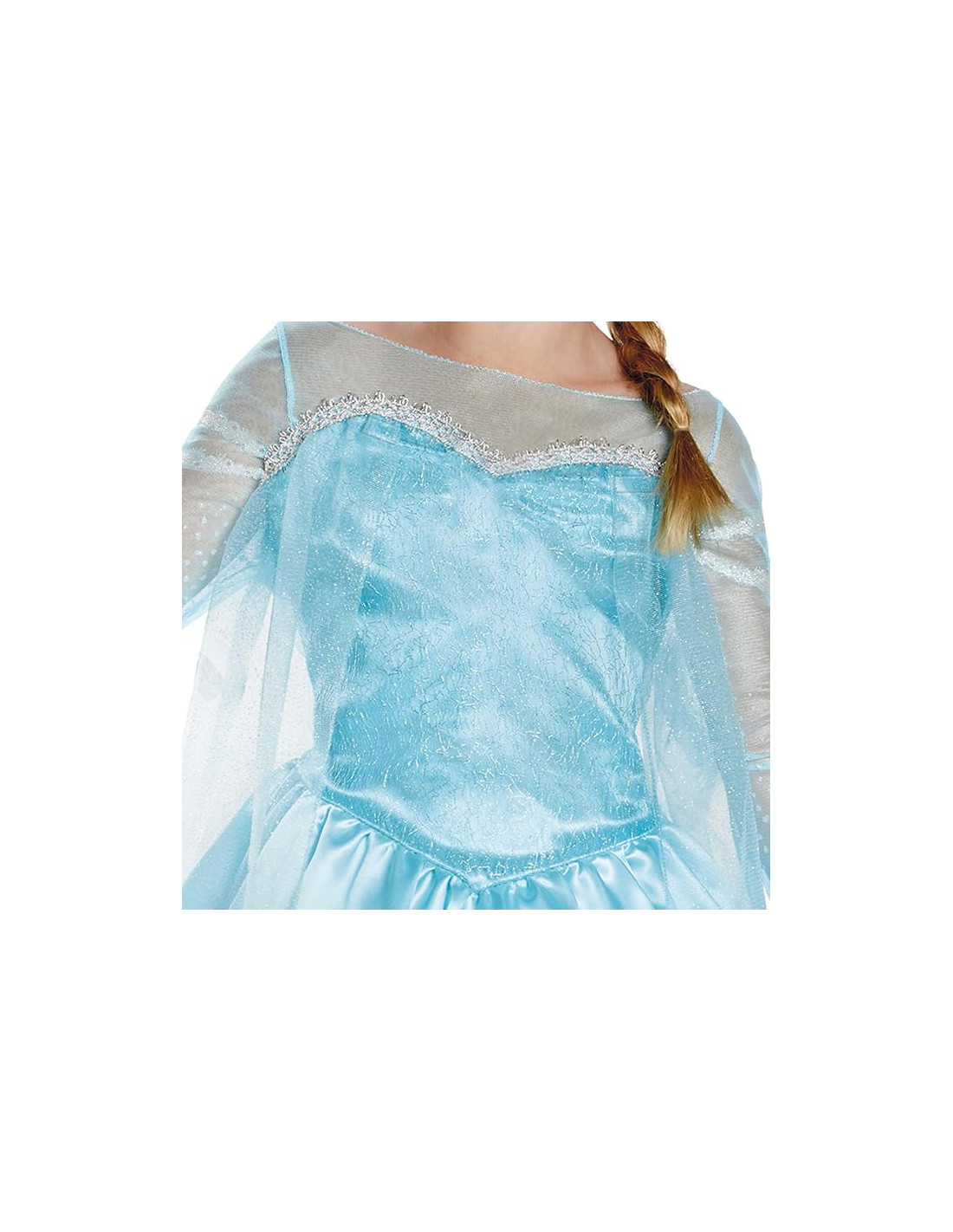 CARACTERÍSTICAS MÁGICAS: Este Precioso Disfraz de Elsa Incluye su Icónico Vestido Azul, con Delicada Malla en las Mangas y Drapeado en la Falda. El Cuerpo Tiene una Textura Helada con un Ribete Plateado en la Parte Superior.