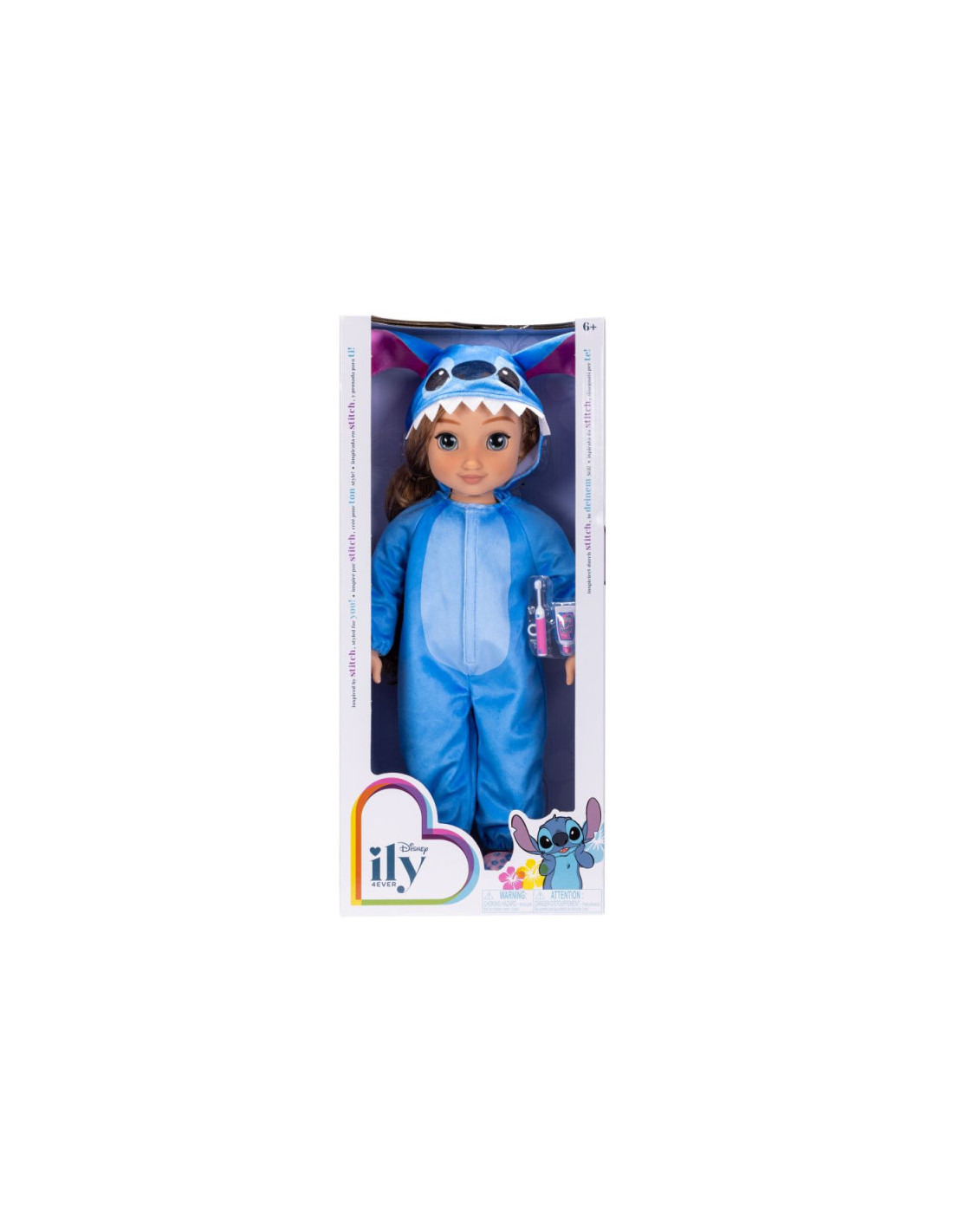 JAKKS EUROPEEsta muñeca de 50 cm, inspirada en Stitch y parte de la colección Disney ily 4EVER, viene vestida con un suave pijama tipo onesie azul con diseño del personaje, que incluye la cara y orejas de Stitch. La muñeca cuenta con cuerpo blando y cinco puntos de articulación (cuello, brazos y piernas), lo que permite jugar y posarla fácilmente. Es compatible con la mayoría de prendas diseñadas para muñecas de 50 cm, lo que amplía las opciones de juego. No requiere pilas y está recomendada para niños a partir de 6 años.