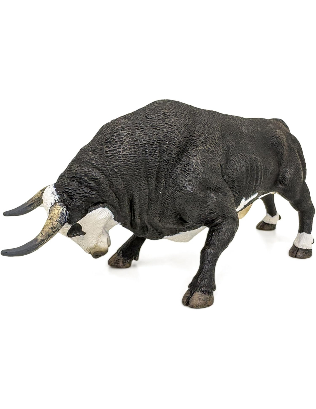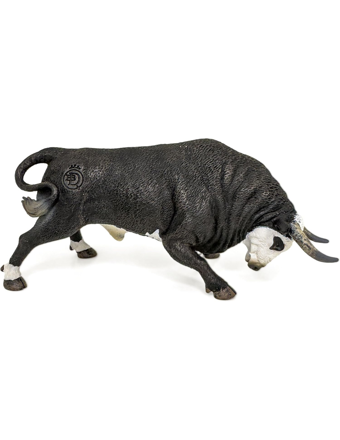 DeQUBE TradingFIGURA TORO BRAVO. Fabricada de resina de alta calidad cuidando cada detalle para alcanzar el máximo realismo y belleza en cada una de las piezas. Pintada a mano, en la que queda reflejada la perfección y grandeza de este animal. REPLICA A ESCALA del toro Bravo español de alta calidad y durabilidad. En este modelo de Deqube el toro Bravo está en actitud embistiendo, es decir, atacando. El toro tiene un pelaje llamado Cara Blanca o Careto . Se denomina así por tener la cara de pelo blanco y el resto del cuerpo de color, en este caso de color negro. COLECCIÓN TORO BRAVO DEQUBE. Esta figura forma parte de una amplia colección compuesta por 11 pelajes diferentes y cada uno de ellos disponibles en dos posiciones, embistiendo y trotando, lo que hace un total de 20 figuras distintas. VALOR EDUCACIONAL. Gran valor educacional por su réplica exacta. Juego creativo con elementos que representan fielmente la realidad de este animal. Además de jugar, aprenden a reconocer la figura del toro y sus características. Potencia el juego imaginativo. LAS DIMENSIONES son 8 cm de altura, 4 cm de ancho y 15 cm de largo. Tiene un tamaño óptimo para que los niños y niñas puedan desarrollar un juego cómodo. Réplica hecha a escala 1:16. Recomendado a partir de 3 años.