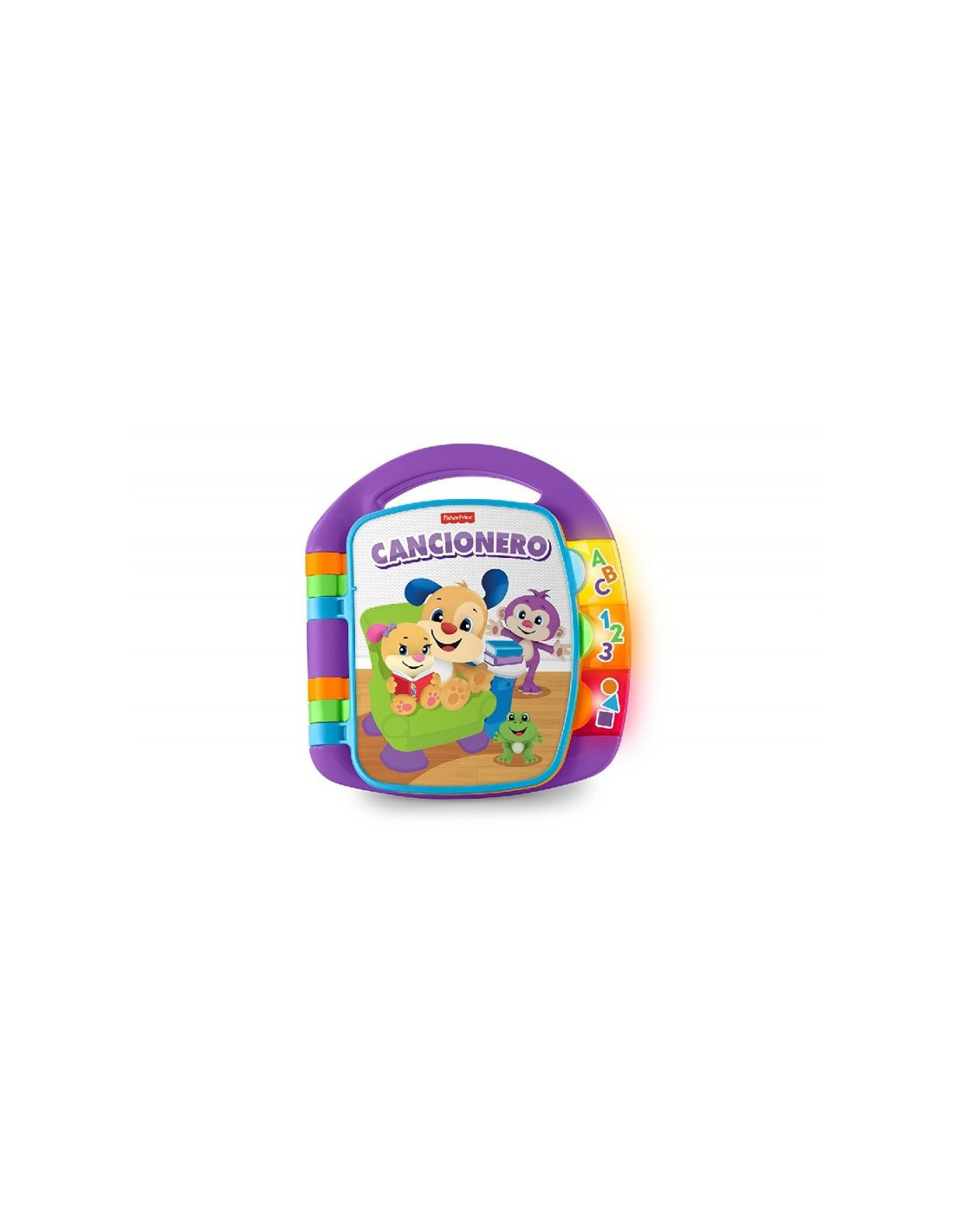 - Gracias al asa en la parte superior, puedes llevar el Libro interactivo de aprendizaje Ríe y Aprende de Fisher-Price donde quiera tu pequeño.