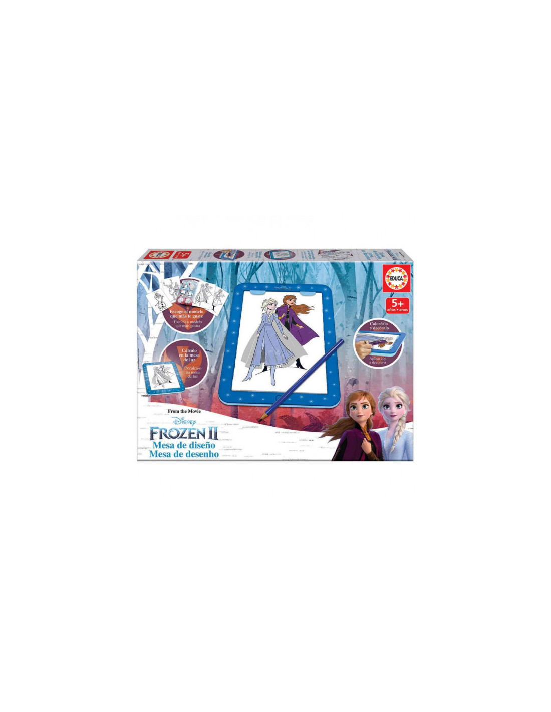 Educa BorrasCrea tus diseños de Frozen con la mesa de luz, coloréalos y decóralos con los adhesivos © Disney.