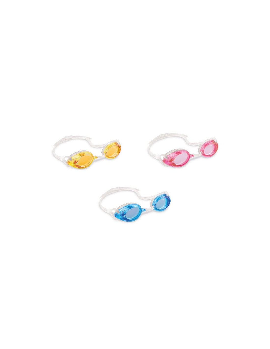 Lilo y StitchGafas de natación INTEX con protección UV y sistema antivaho. Perfectas para nadar y bucear bajo el agua, con un diseño sencillo y práctico. Cuentan con goma de silicona ajustable libre de látex y están disponibles en color rosa, azul o amarillo. Ideales para una visión clara y nítida en la piscina o en el mar
