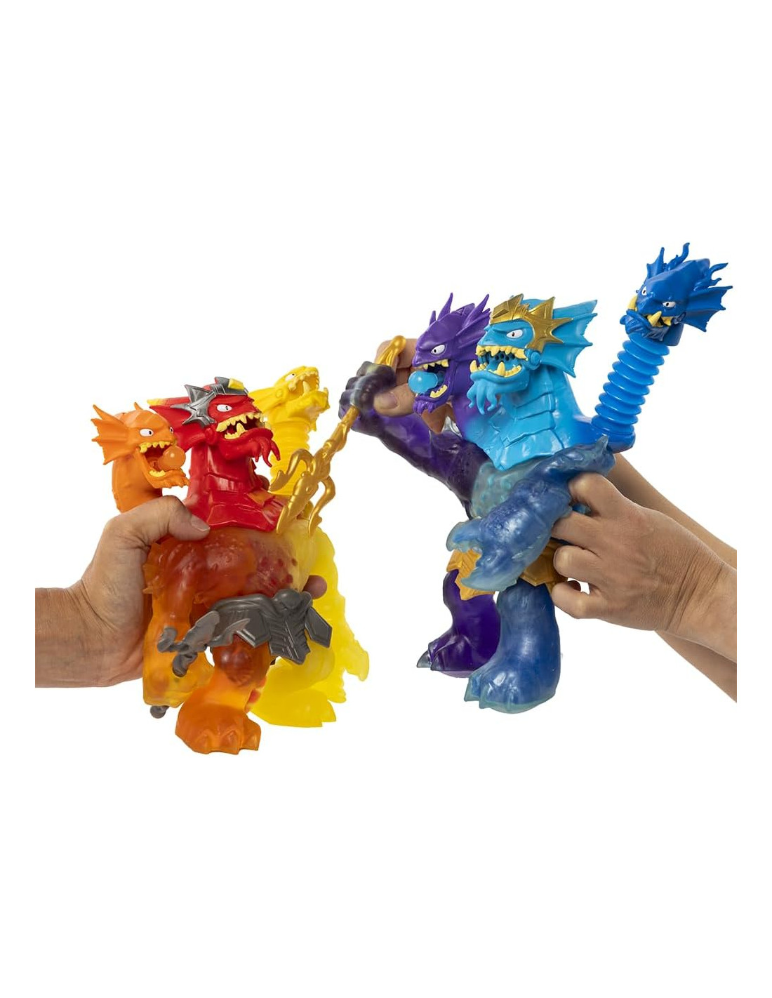 King Hydra se estira hasta 3 veces su tamaño (hasta 80 cm) y siempre vuelve a su forma original, ofreciendo horas de diversión. Equipado con un Tridente de Oro, este héroe está listo para enfrentarse a cualquier enemigo con su ´Triple Ataque´. Es ideal para niños a partir de 4 años que buscan emociones y acción sin fin.