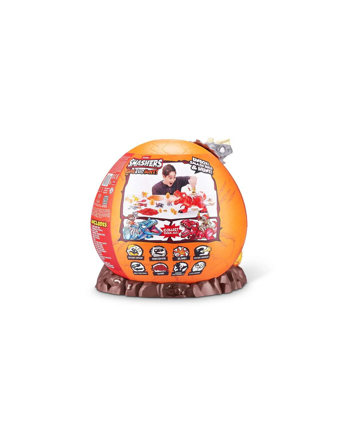 Huevo Smashers Dinosaurio con figuras y 35 sorpresas, añade agua para que haga efecto vapor, luces y sonidos.