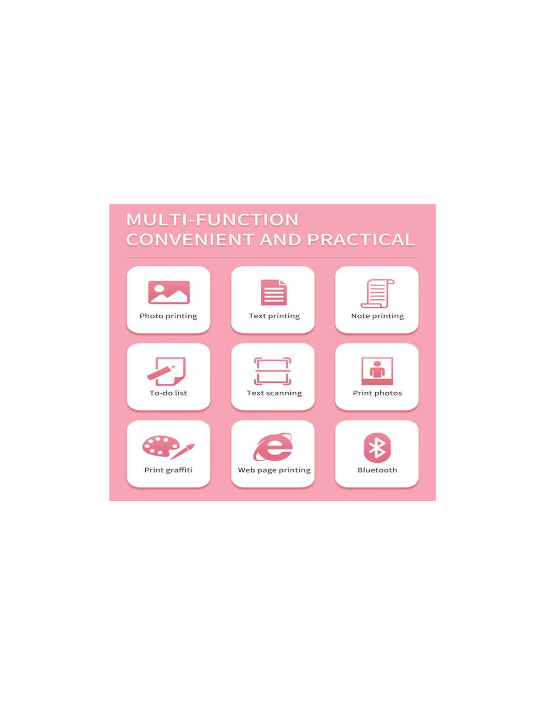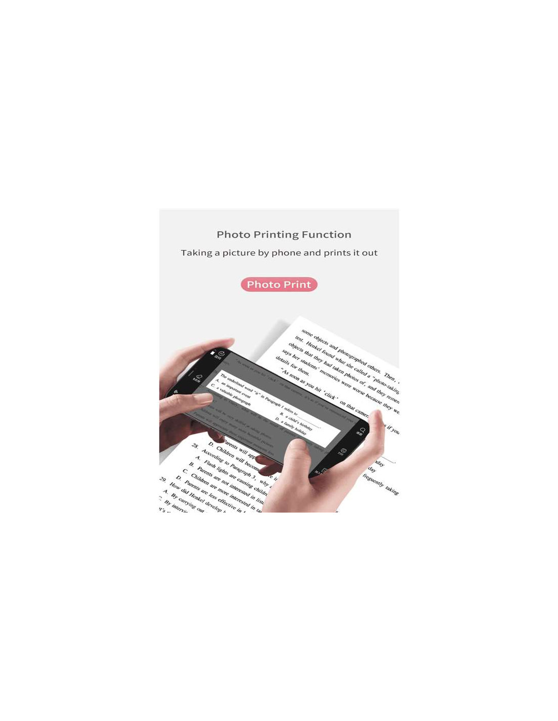 Con esta impresora, no necesitas cartuchos ni tinta, ya que funciona mediante impresión térmica, lo que la hace más económica y respetuosa con el medioambiente. Gracias a su batería recargable, puedes llevarla contigo a cualquier parte y conectarla fácilmente vía Bluetooth a tu dispositivo móvil.