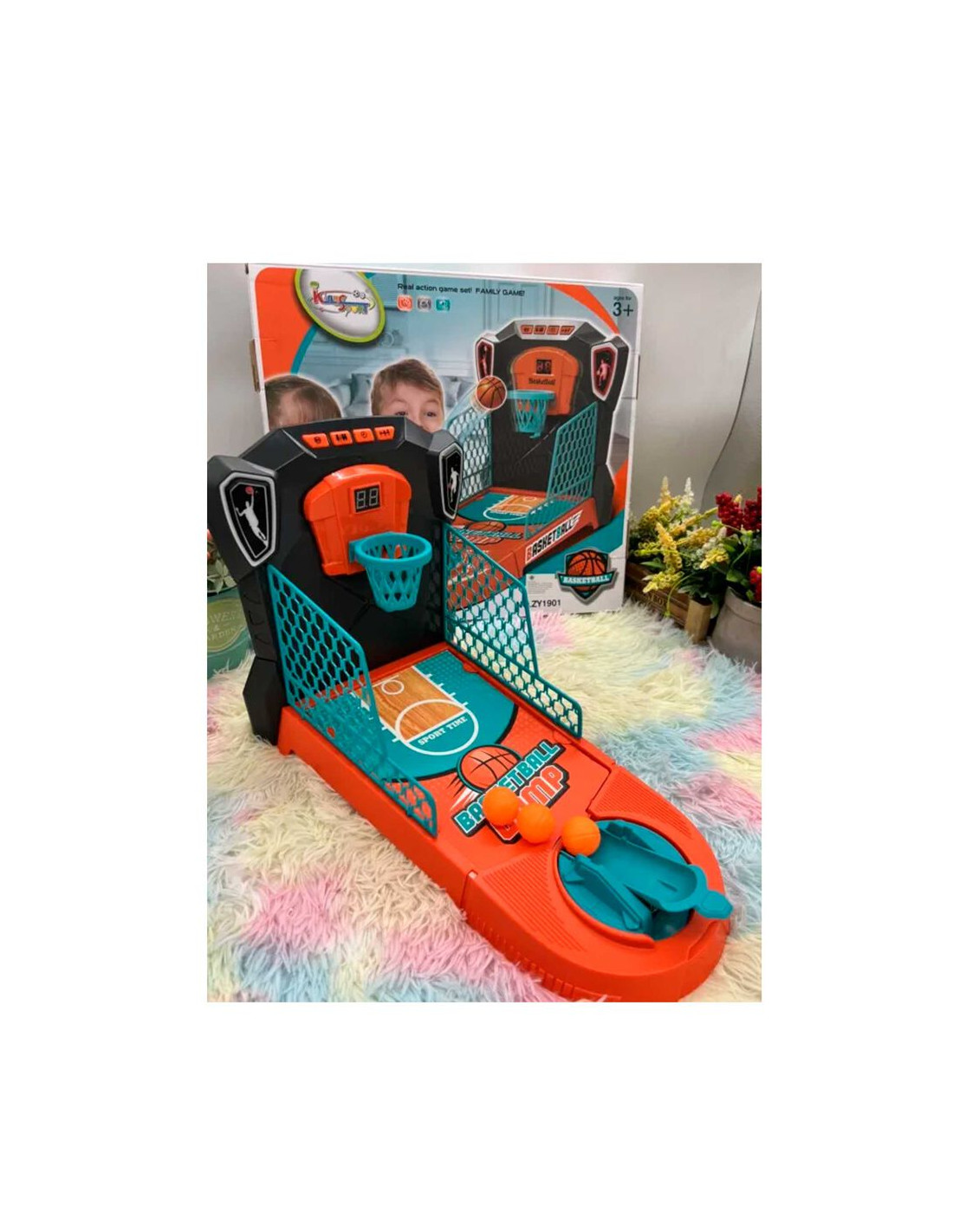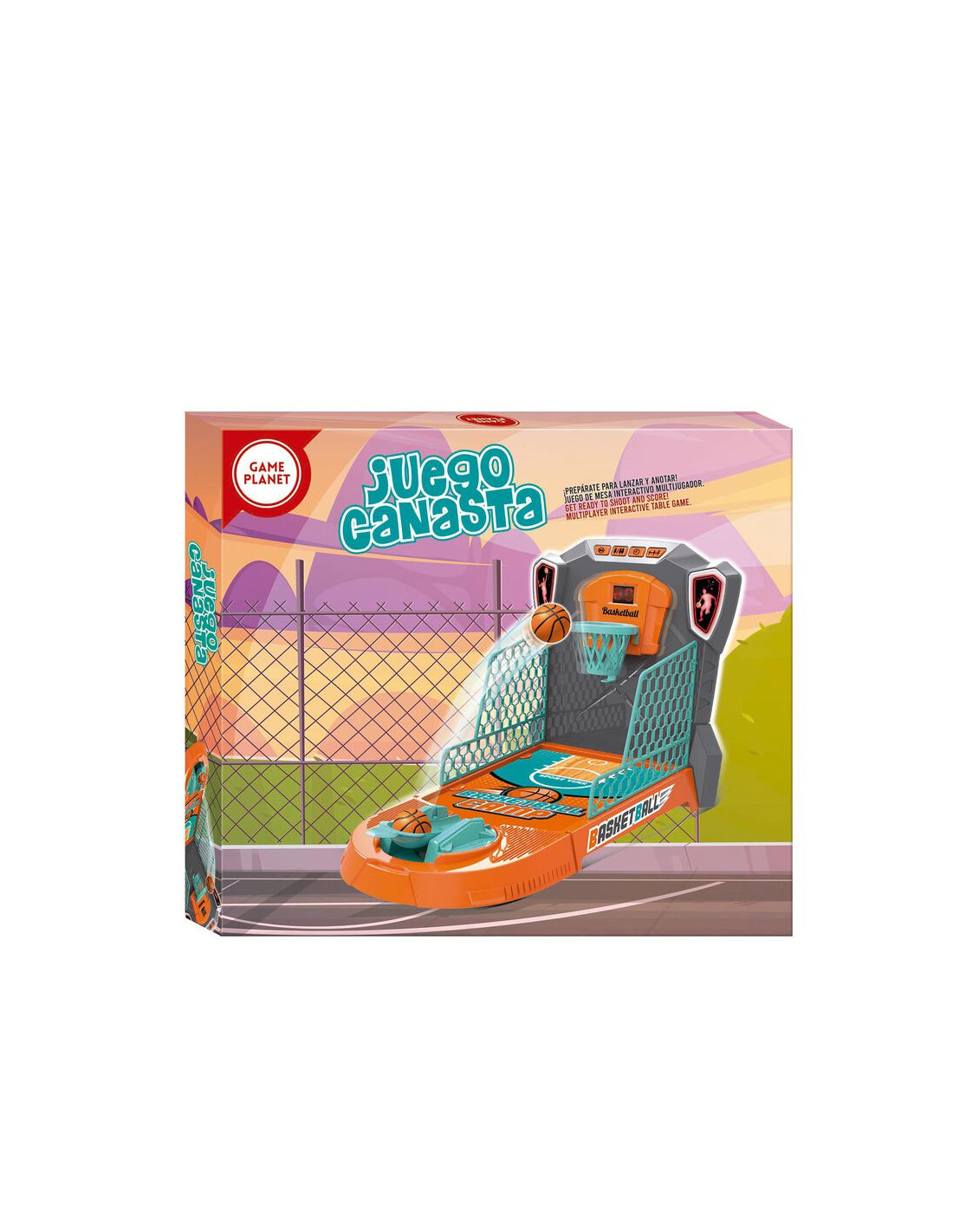 Canasta de sobremesa compacta. Marcador electrónico. Lanzador integrado.