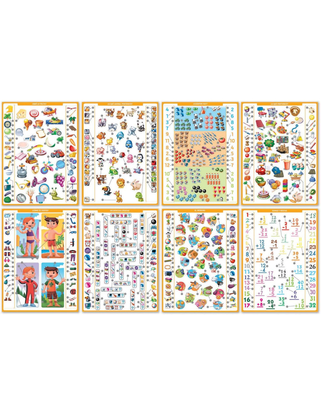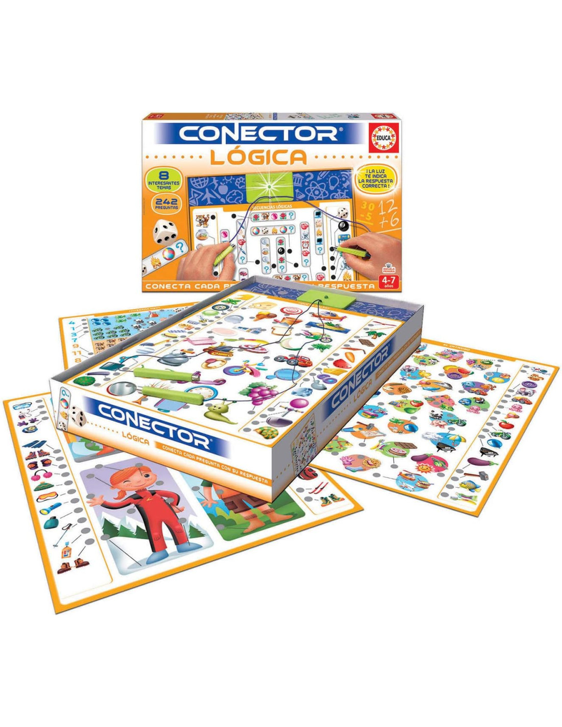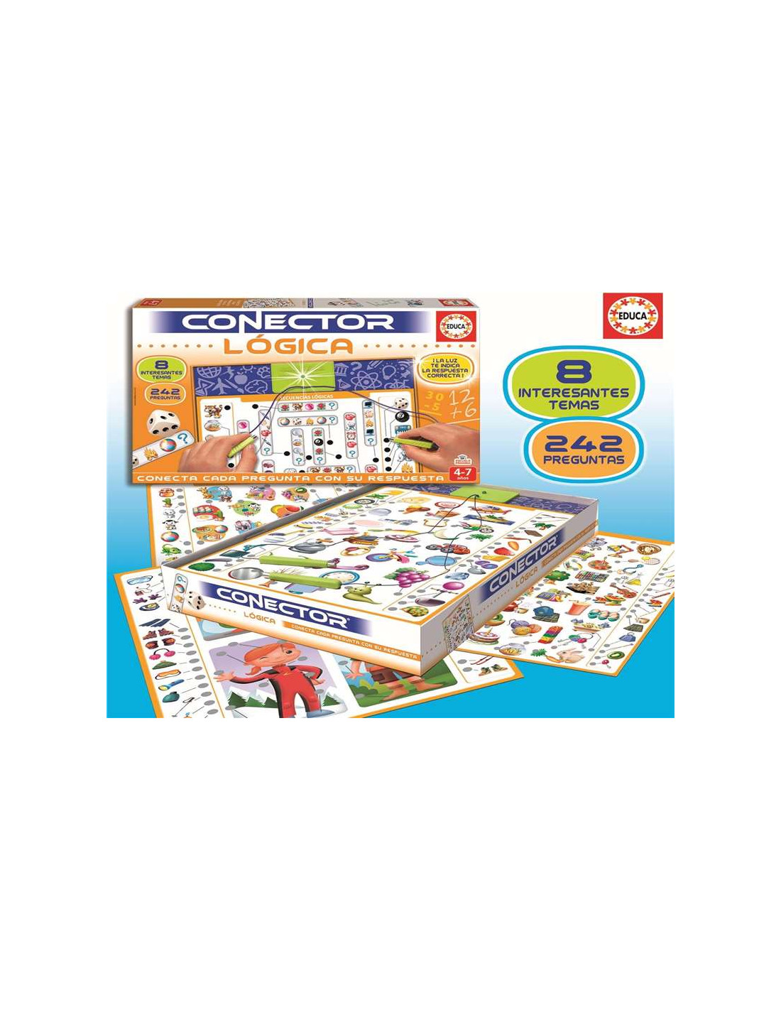 Educa Borras8 temas nuevos para que te diviertas poniendo tu memoria y tu sentido lógico a trabajar (¿Qué falta?, Suma y resta, El intruso, Serie, etc.). Una referencia que completa a la perfección el juego CONECTOR asocio y aprendo. Este juego permite que el niño ejercite sus capacidades cognitivas y mejore su agilidad mental, además de desarrollar su sentido de la observación y su sentido lógico. CONTENIDO: - 8 láminas con 242 preguntas - 1 base multiconectora ADVERTENCIA: No recomendable para menores de 3 años, ya que contiene piezas pequeñas que podrían provocar asfixia en caso de ser ingeridas por el niño/a.