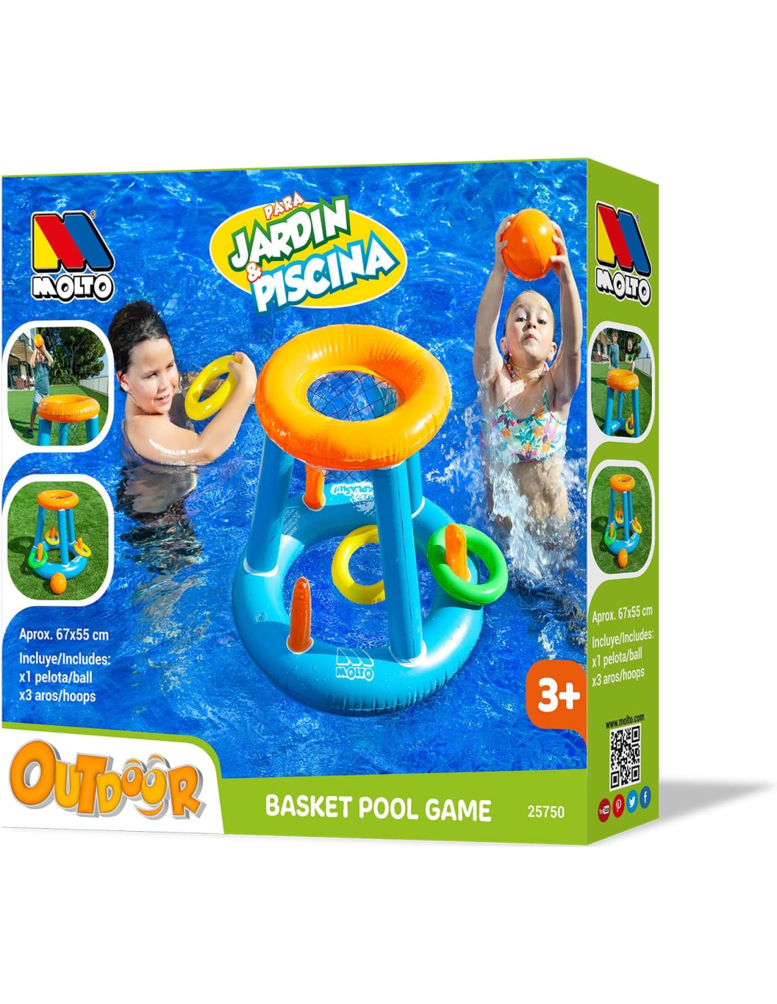 Molto?JUEGO DE BALONCESTO INFLABLE PARA PISCINA Y JARDÍN?¡A divertirse con el baloncesto! Este juego de baloncesto inflable es perfecto para disfrutar en la piscina o en el jardín, ideal para niños que aman el deporte y el agua.