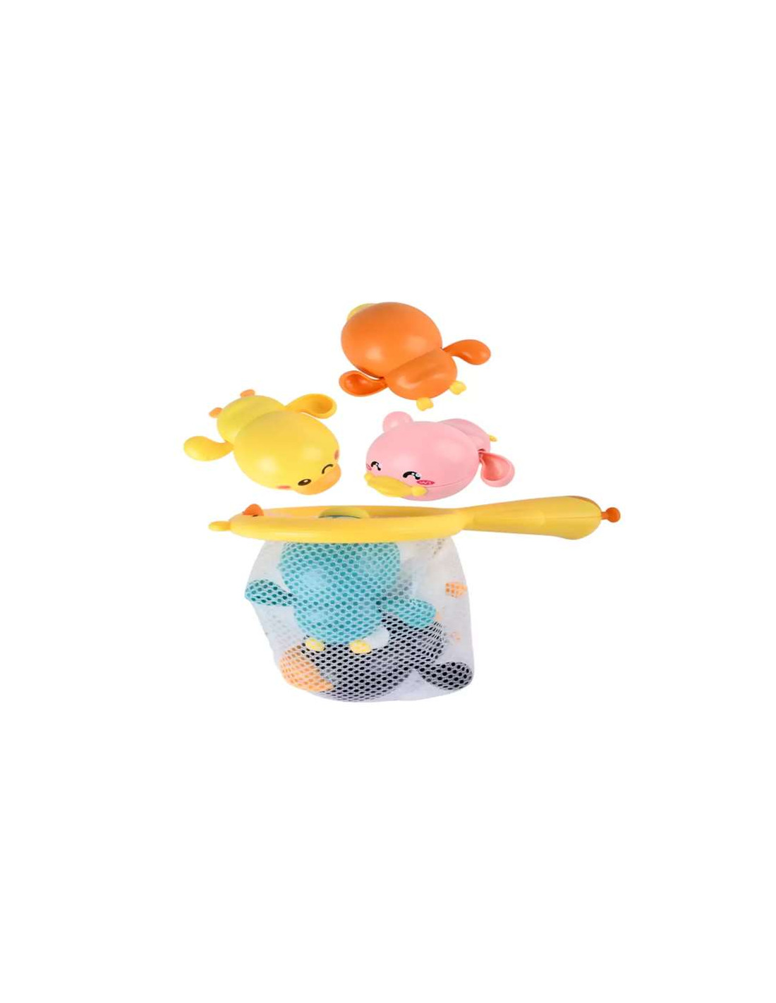 Puedes jugar a atraparlos con la red, inventar carreras de patitos, hacer que naden y chapoteen o simplemente divertirte apretándolos y viéndolos flotar en el agua. Son geniales para que los peques se entretengan mientras se bañan, para estimular la coordinación mano-ojo y para que la hora del baño sea un momento de juego y aprendizaje.