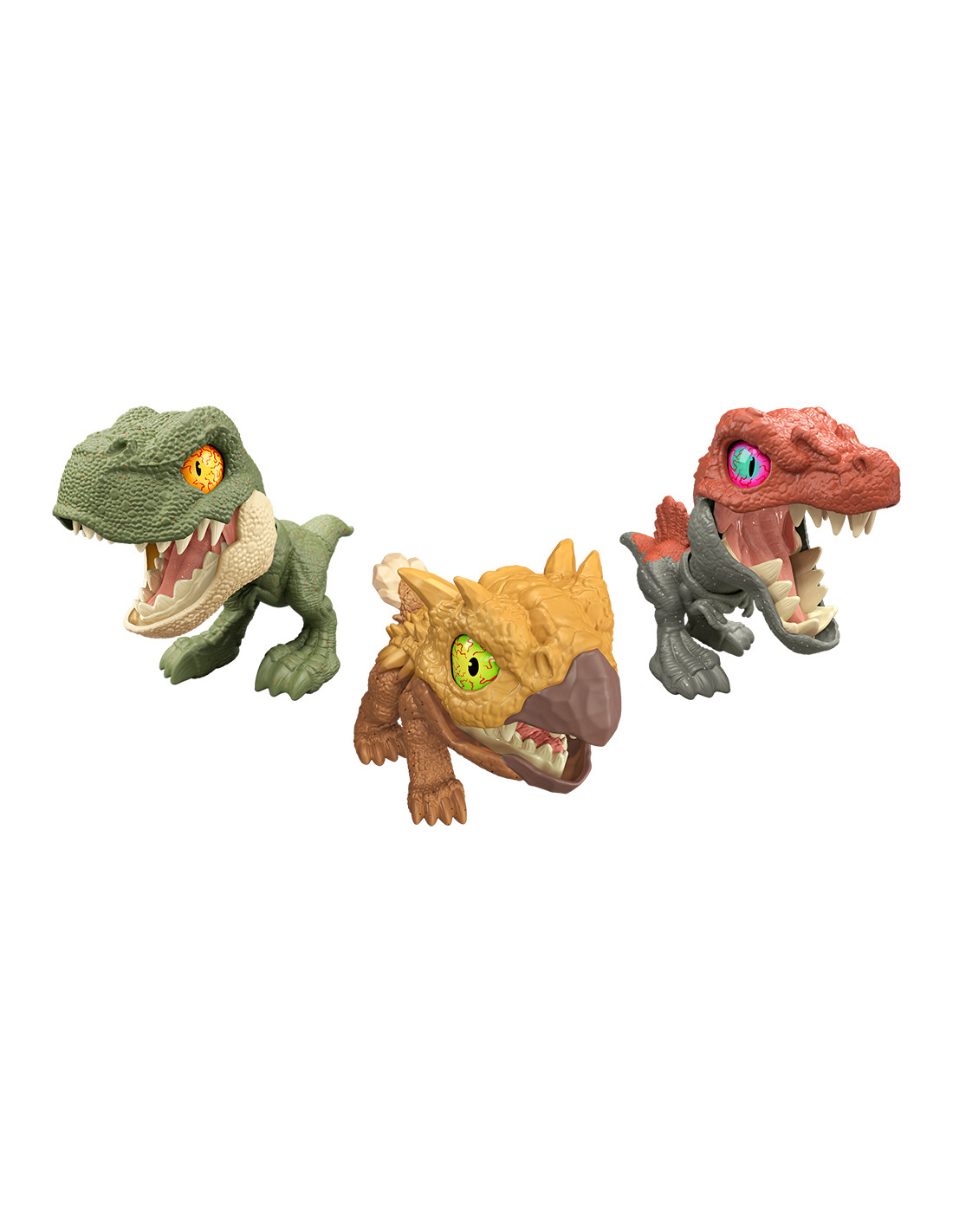 Cada dinosaurio coleccionable Mighty Little Biters de Jurassic World evoluciona de lindo a enojado con un solo movimiento fácil.
