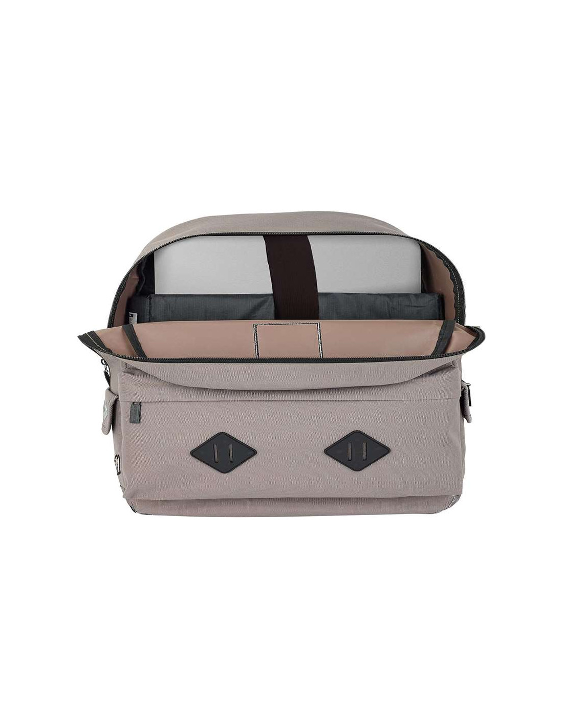 Alojamiento interior acolchado para portátil de hasta 15, 6" Bolsillos laterales con solapa. Doble tirador en cremallera principal para facilitar su apertura Bolsillo frontal con cremallera Asa de mano en la parte superior