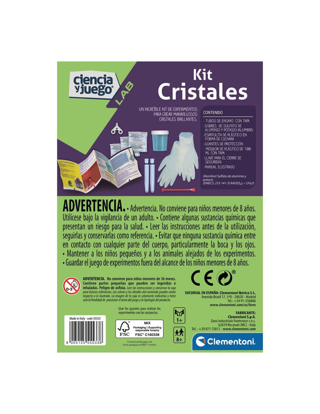 ClementoniEl Set de Cristales de Clementoni ofrece a los niños una emocionante aventura en el mundo de la mineralogía y la ciencia de los cristales. Con este kit, los pequeños pueden explorar y experimentar la formación de cristales reales desde la comodidad de su hogar. A través de una serie de experimentos prácticos y fascinantes, los niños aprenderán sobre los procesos químicos detrás de la formación de los cristales, desarrollando habilidades de observación, paciencia y pensamiento crítico. Recomendado para niños a partir de 8 años, este kit proporciona una experiencia educativa enriquecedora y divertida que estimula la curiosidad y el amor por la ciencia. ¡Prepárate para embarcarte en un viaje fascinante hacia el mundo de los cristales con el Set de Cristales de Clementoni!