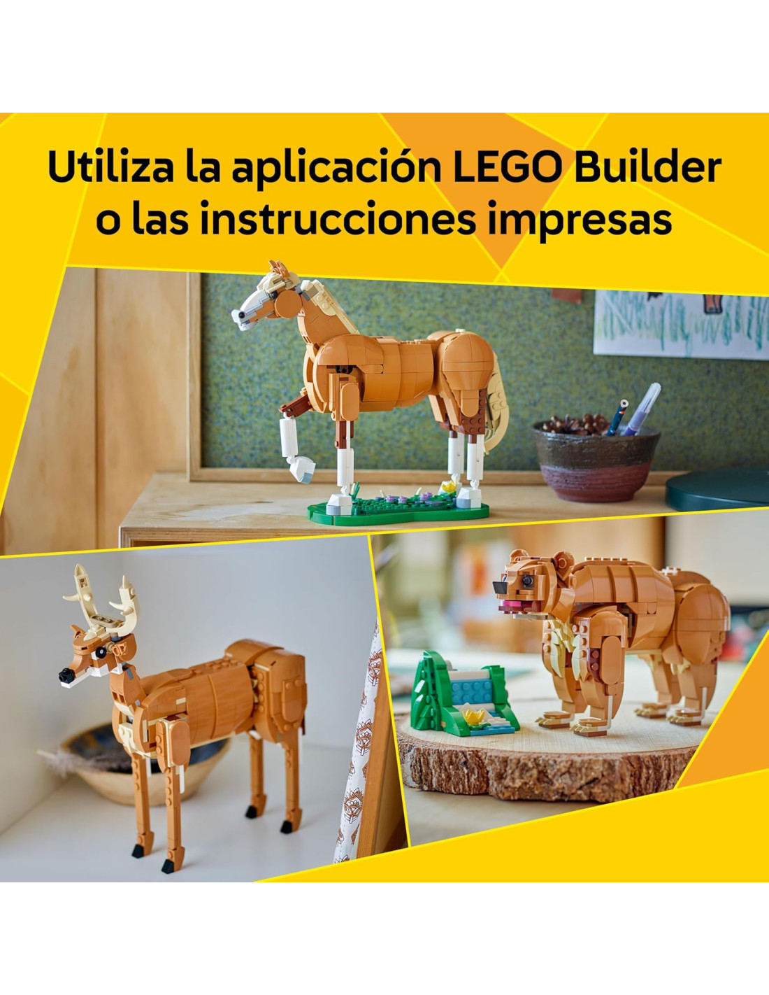 Innumerables opciones de juego con animales: Los peques podrán interpretar historias con 3 animales de juguete: un caballo, un oso o un ciervo (no se pueden construir simultáneamente)