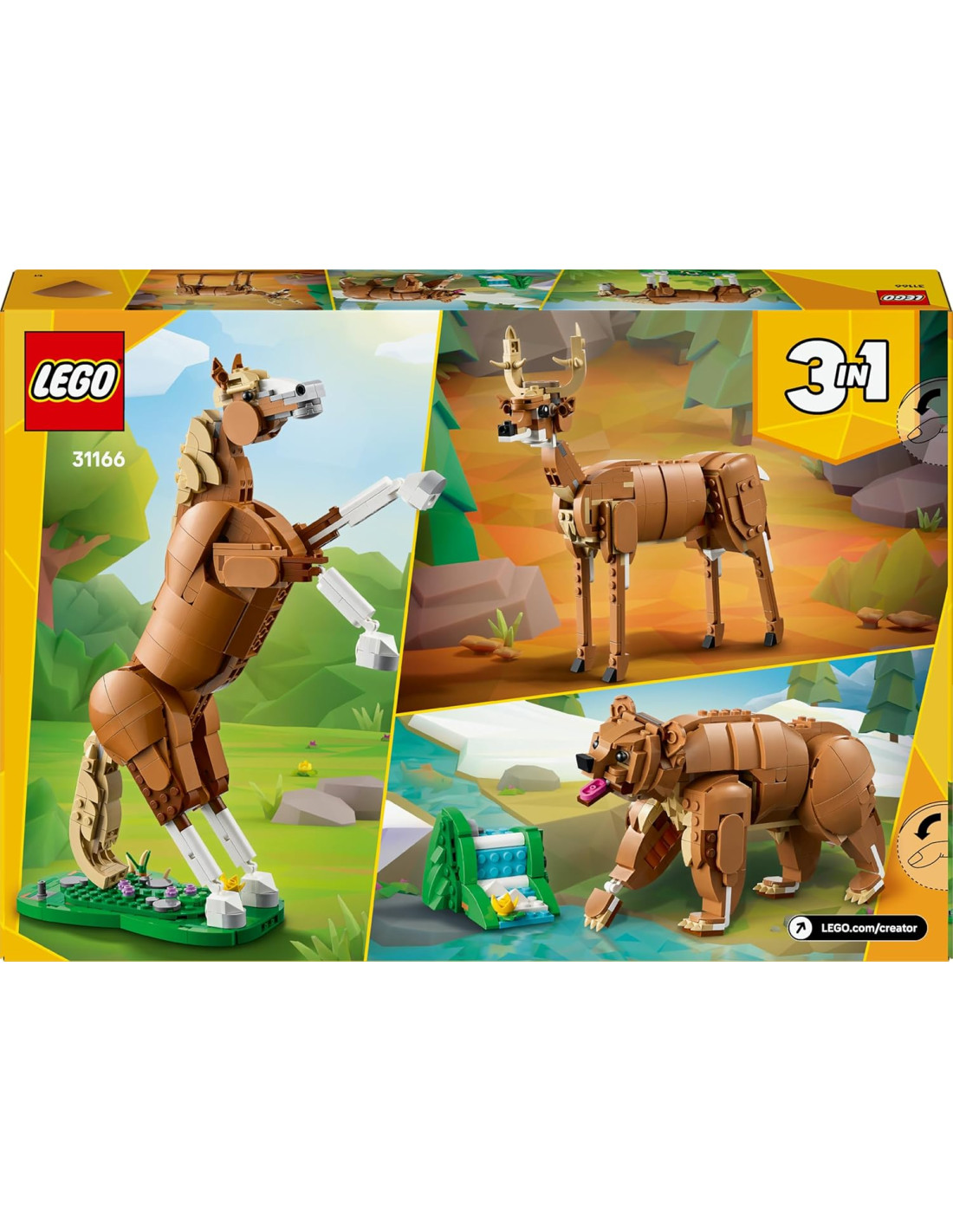 Lego3 animales de juguete en 1 caja: El kit de construcción LEGO Creator Caballo Noble para niños y niñas a partir de 9 años les permite crear 3 figuras articuladas de animales diferentes con los mismos ladrillos
