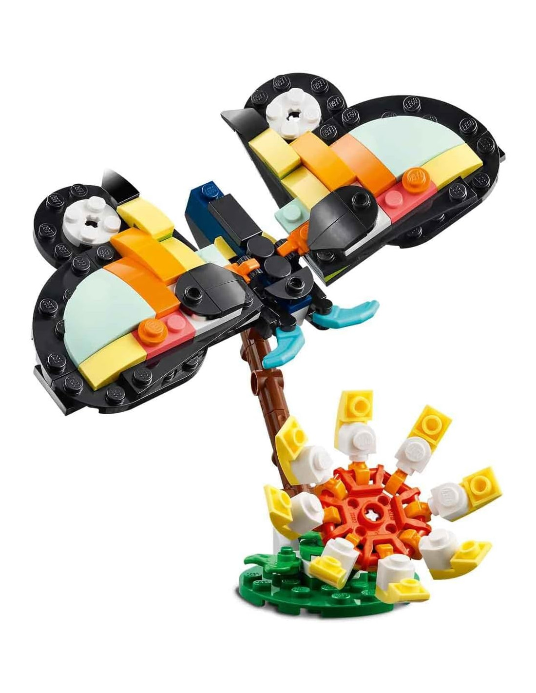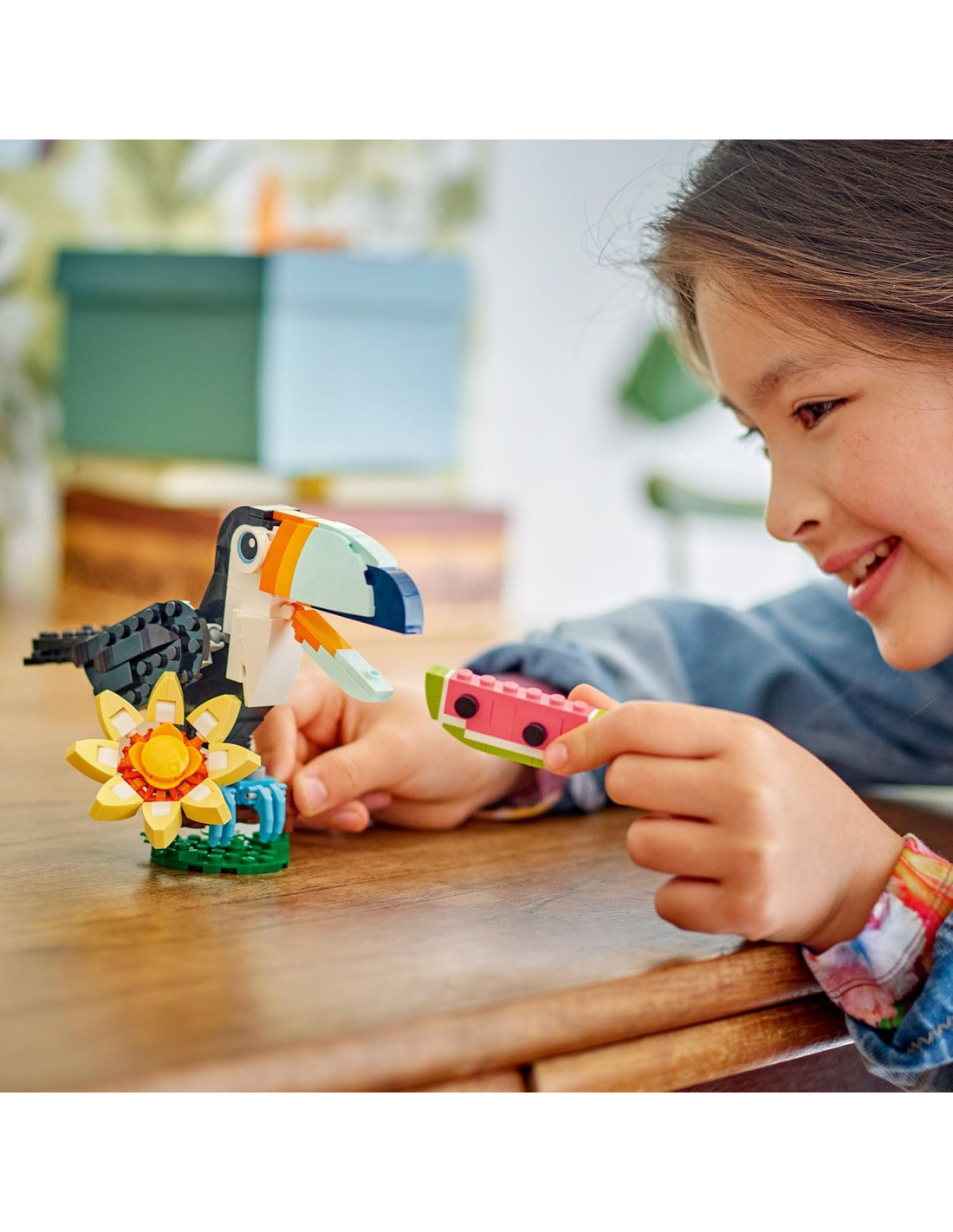 LEGO Creator 3 en 1 Fauna Salvaje: Tucán Tropical con Flor - Animal de Juguete Transformable
