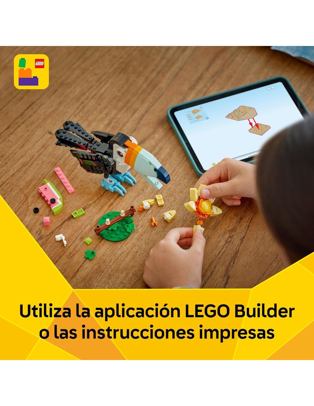 Lego3 animales tropicales de juguete en 1 caja: La figura LEGO Creator 3 en 1 Fauna Salvaje: Tucán Tropical permite construir y reconstruir 3 animales de juguete con los mismos ladrillos