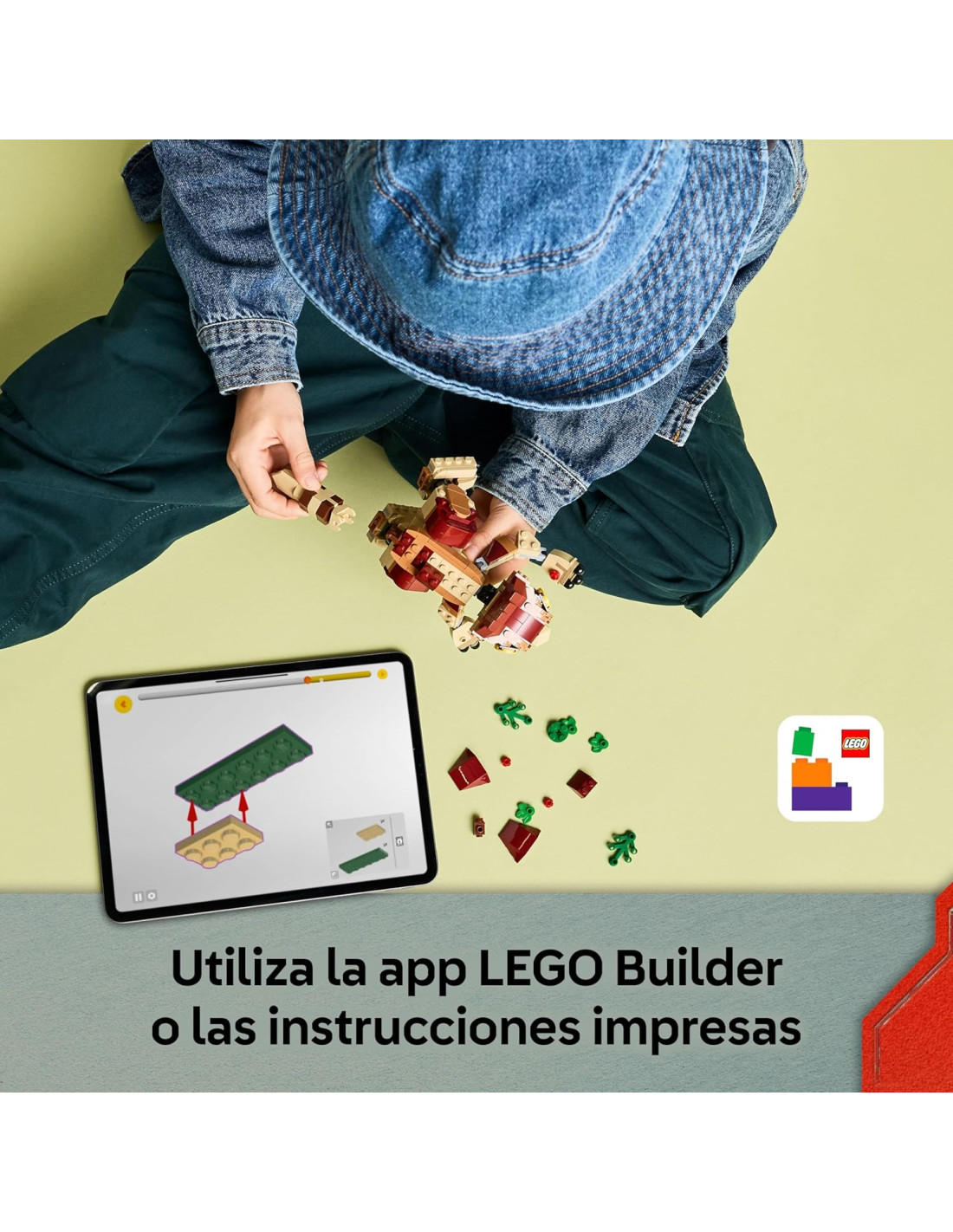 Aventuras con un dinosaurio LEGO: El dinosaurio interactivo tiene mandíbula que se abre, y cabeza, cola, brazos y patas móviles, un kit de construcción inspirado en Jurassic World: El renacer flexible y está diseñado para jugar e imaginar sin límites