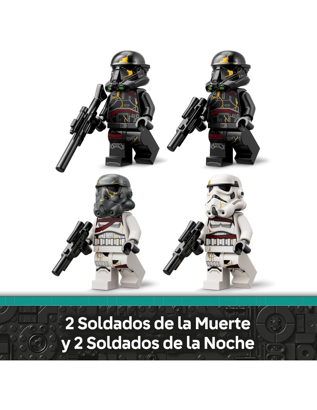 4 minifiguras LEGO Star Wars: El set LEGO basado en Ahsoka incluye 2 soldados de la muerte y 2 soldados de la noche, cada uno con un casco y un bláster