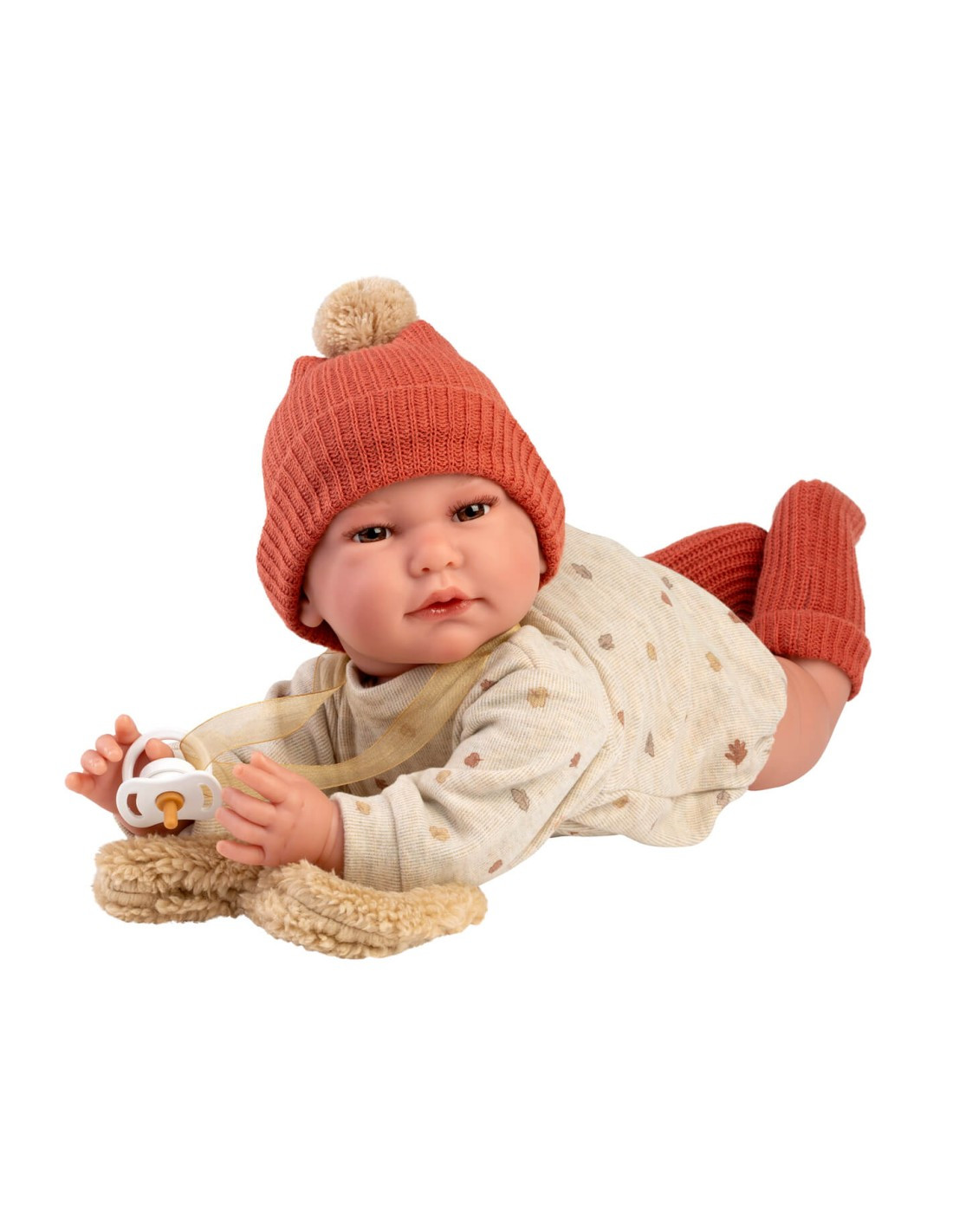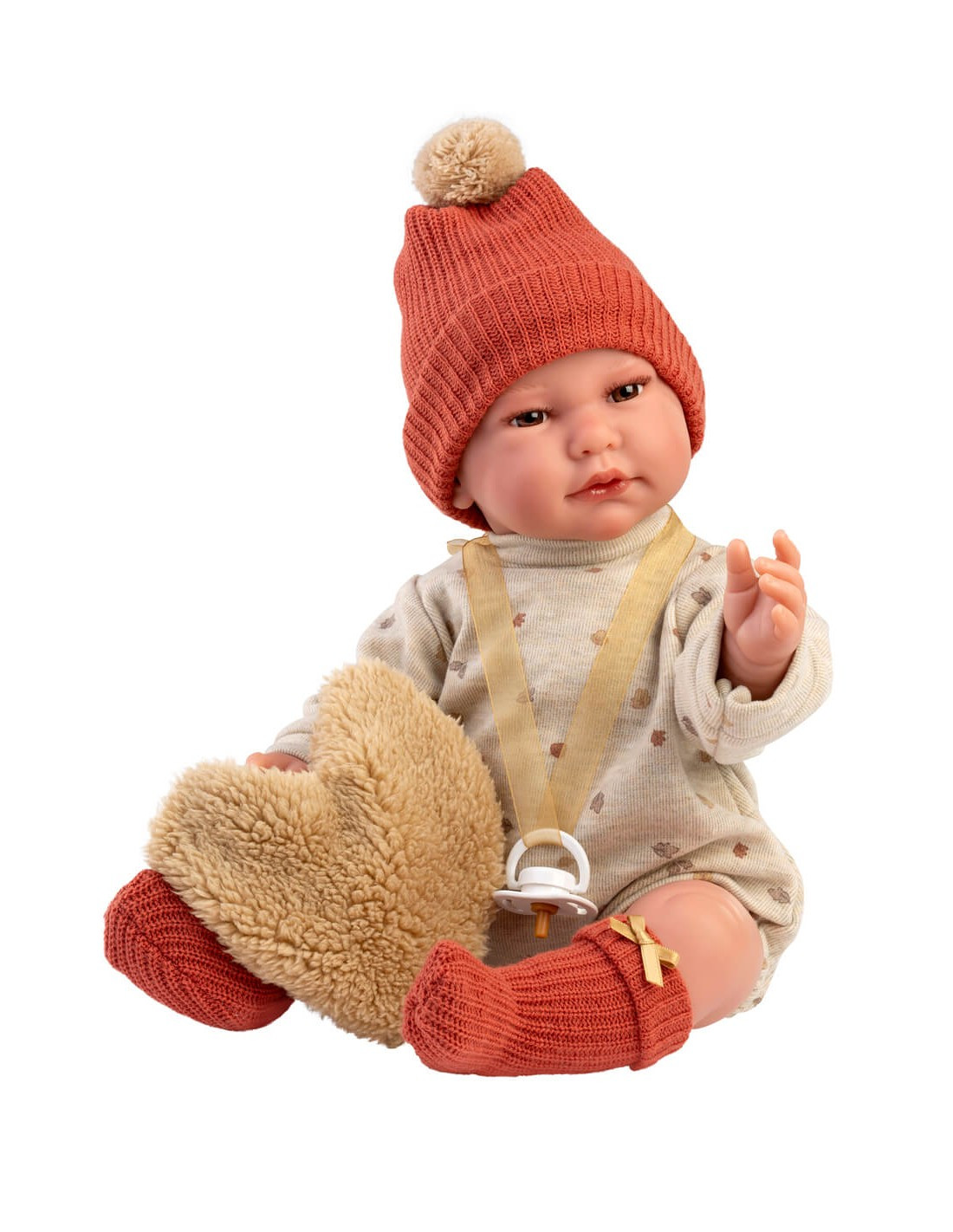 LLORENSLuis es un bonito recién nacido que viste en tonos marones y anaranjados. A Luis le encantá su peludo cojín con forma de corazón. Tiene un cuerpo blandito con extremidades de vinilo, y si le aprietas la barriguita, llorará y llamará a mamá y papá.