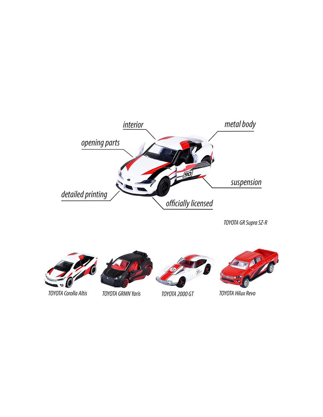 Incluye: Toyota 2000 GT blanco, Toyota Hilux Revo rojo, Toyota GR Supra SZ-R blanco, Toyota Corolla Altis blanco y Toyota GRMN Yaris negro.