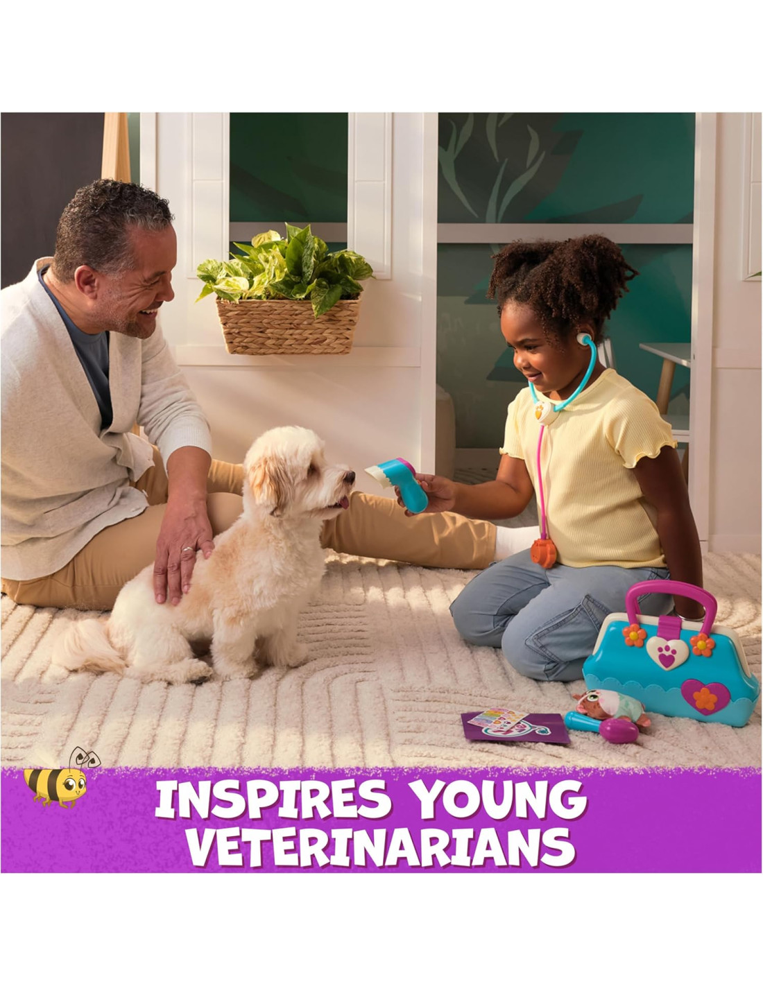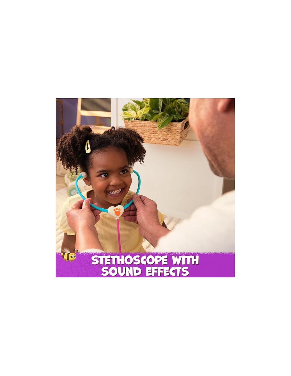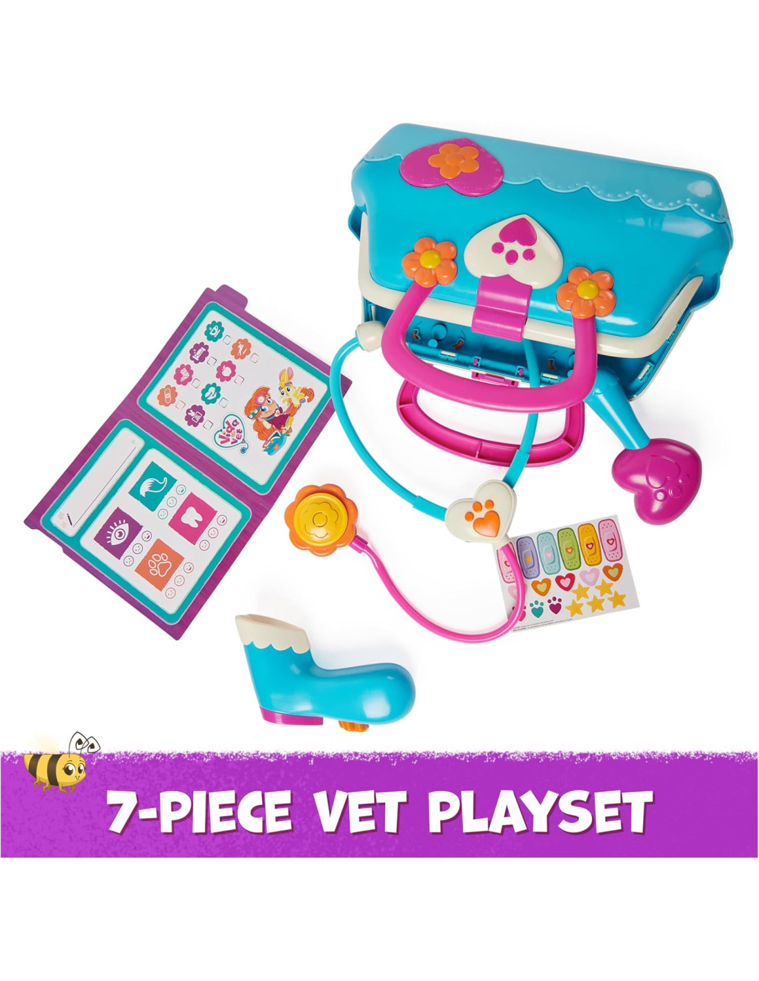 TODO LO NECESARIO PARA JUGAR A SER VETERINARIO: El maletín médico veterinario incluye 5 accesorios inspirados en la serie: un estetoscopio con sonidos, termómetro, martillo de reflejos, historial de paciente y hoja de pegatinas