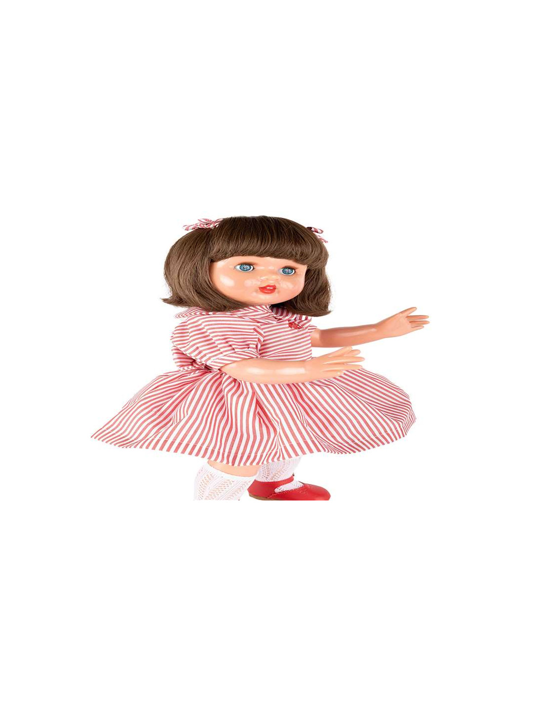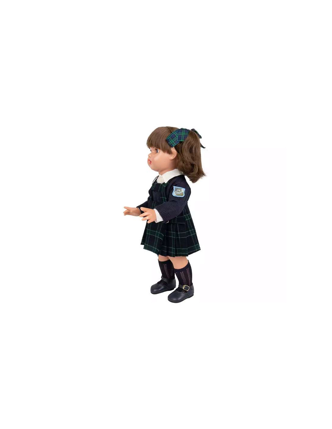 Mariquita PerezLa muñeca Mariquita Pérez luce un uniforme escolar con falda de cuadros y jersey azul marino.