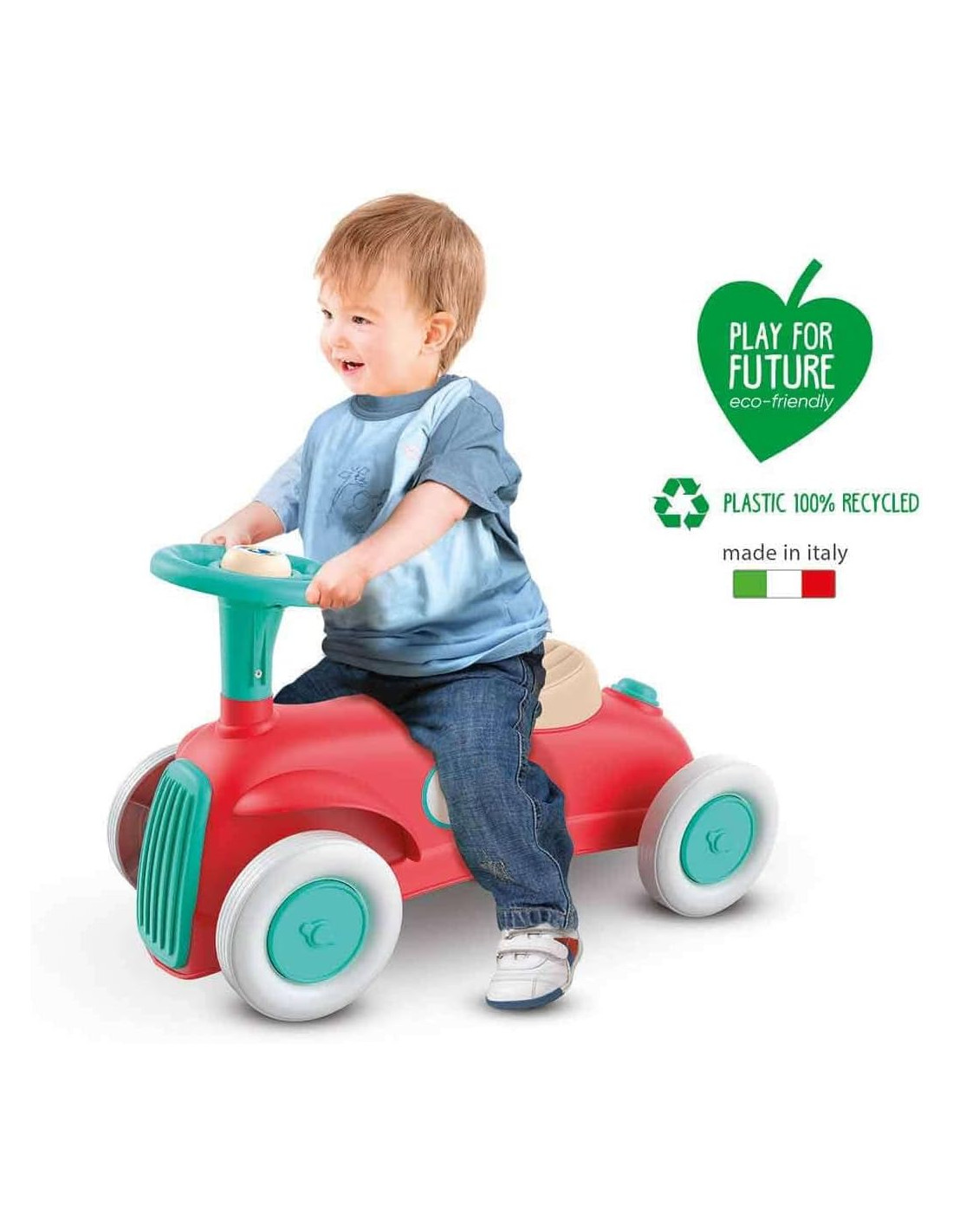 ClementoniUn coche de juguete hecho de material reciclado, con un diseño sofisticado y un estilo vintage para conducir hacia nuevas y fantásticas aventuras