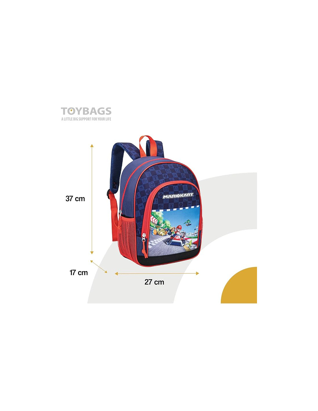 ToyBags¿Listo para una carrera llena de diversión? La Mochila Super Mario Kart 38 cm te acompaña en todas tus aventuras escolares con estilo y comodidad. Con un diseño inspirado en el famoso videojuego, esta mochila es perfecta para los fans de Mario que quieren destacar en el cole.
