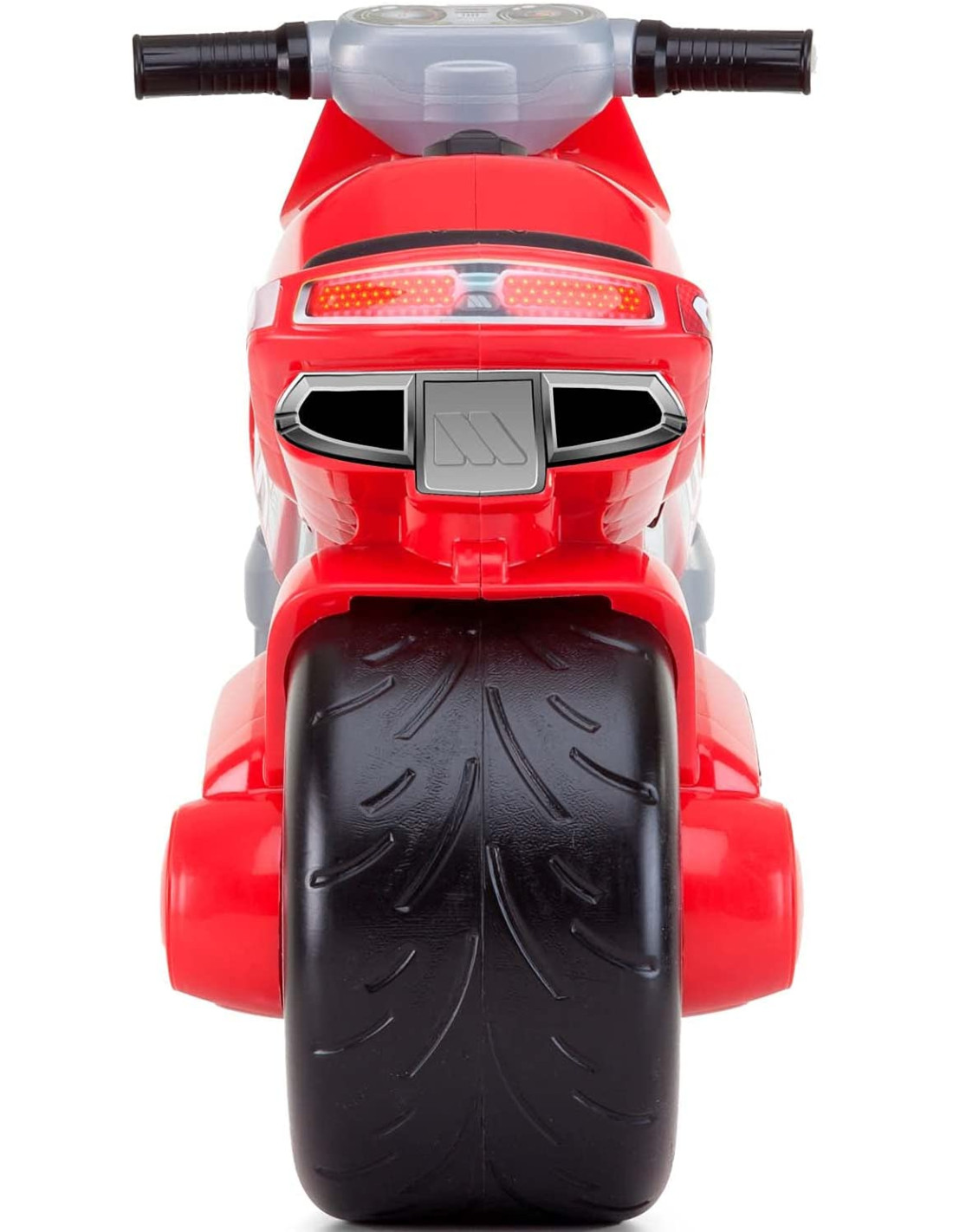 Esta moto es de color rojo y gris y es exclusiva en Toy Planet por su diseño. Fabricada en un material plástico muy resistente. A todos los pequeños les encanta emular las actividades de los adultos, y manejar una moto es una de las que más les atrae.