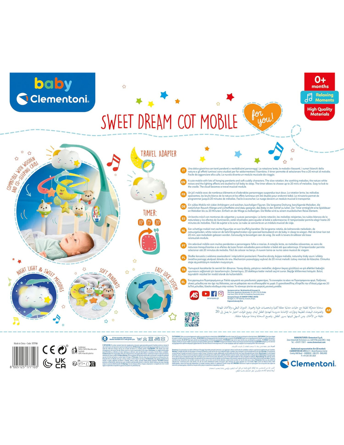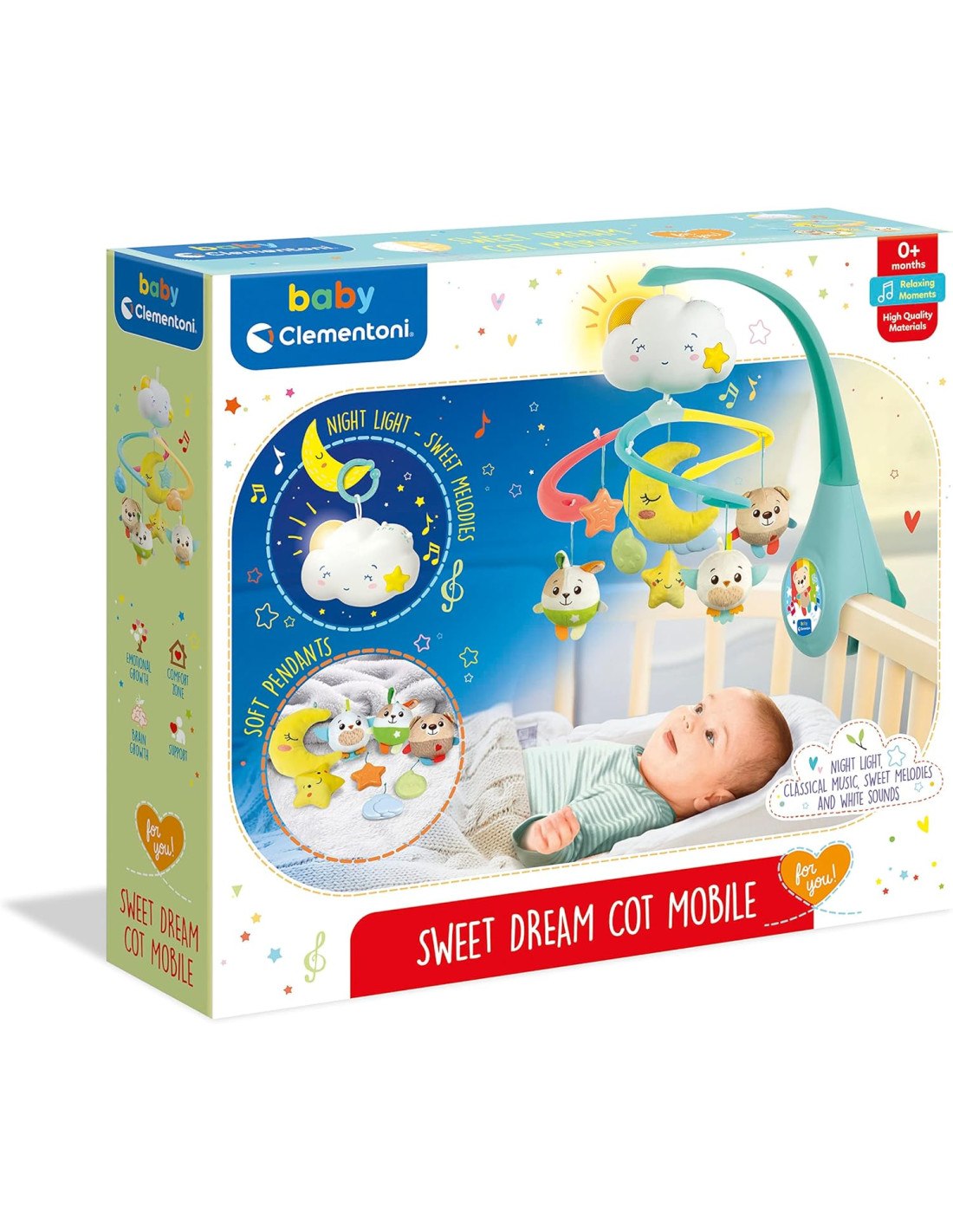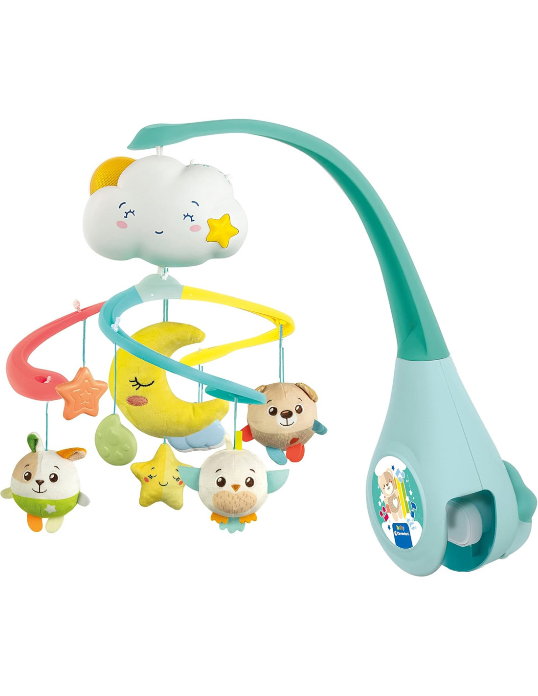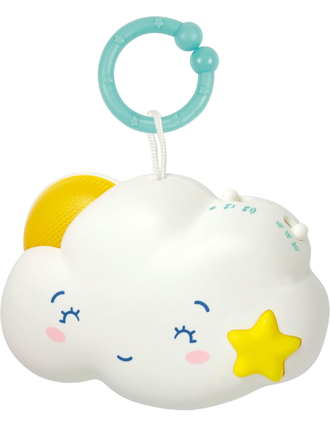 ClementoniEl proyector de nube difunde una selección de 10, 15 o 20 minutos continuos de dulces melodías y relajantes ruidos blancos, que crearán una atmósfera serena para ayudar al bebé a dormir.