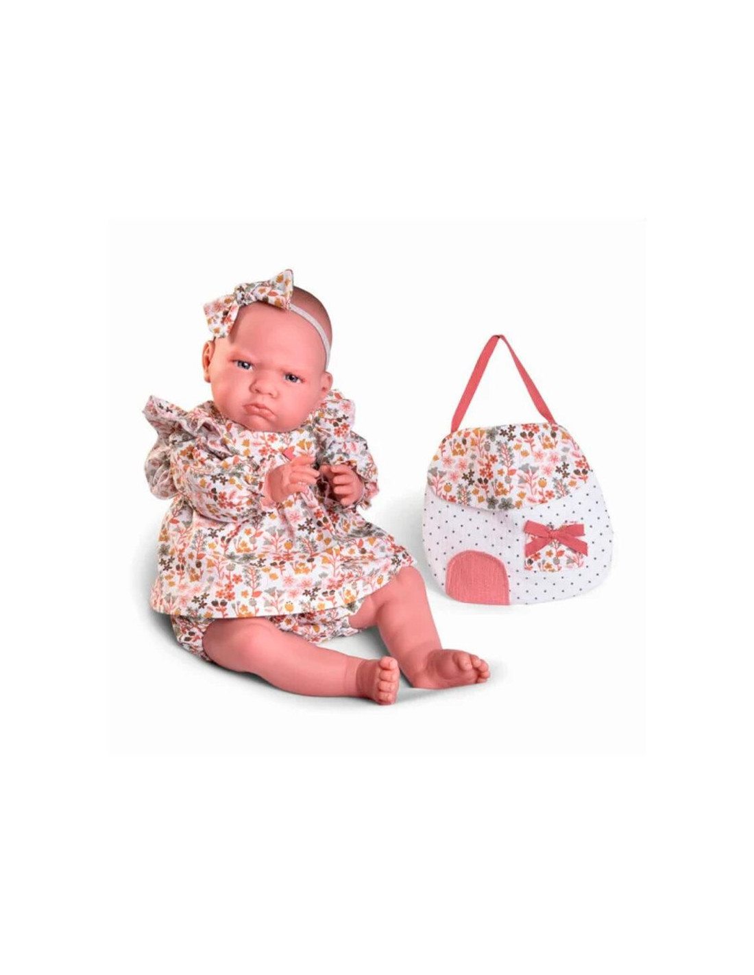 Muñecas Antonio JuanMi Primer Reborn son muñecas realistas con las que podrás disfrutar como de un bebé casi real. Fíjate en su manicura, el peso o la babita que le asoma entre los labios... Una elección perfecta pensando en el juego de los más pequeños. Mi Primer Reborn Berta lleva una bolsita en forma de casita para ti. Podrás llevar en ella sus juguetes cuando salgas a pasear. Berta va vestida con un bonito vestido de flores a conjunto de su diadema. Además lleva pañal como un bebé de verdad. Mide 52 cm. Incluye: Diadema, vestido, culotte, pañal, bolso y un libro de familia para tu Reborn de Muñecas Antonio Juan. CUIDADOS DE TU BEBÉ ´MI PRIMER REBORN´ BERTA: - Atención: No está recomendado para niños menores de 3 años. - Al ser una pieza artesanal requiere cuidados especiales y tiene que ser manejado con cuidado. - Evitaremos la luz solar directa: La luz solar excesiva puede hacer desvanecer la pintura del vinilo y el color del pelo y de la ropa. - Evitaremos el calor excesivo: El vinilo se ablanda cuando se calienta, por lo que una exposición de calor puede deformarlo. - Evitaremos el frío extremo: El frío extremo puede hacer que la pintura del vinilo se agriete. - Limpieza: Se puede limpiar utilizando un paño húmedo sin frotar. No apliques sobre su piel jabones, toallitas, cremas, ni productos que contengan alcohol ya que puedes dañar su pintura. Si el cuerpo de tela está sucio, debes limpiarlo con un paño húmedo sin mojar el relleno. NO BAÑAR. Referencia: 81385 Altura en cm: 52 Fabricado en: España Marca: Antonio Juan Tipo de artículo: Muñeca Modelo: AJ Mi primer Reborn Berta 52 cm Material: Cuerpo de tela blandito Color de pelo: Sin pelo Color de ojos: Grises Tipo de ojos: Siempre Abiertos.