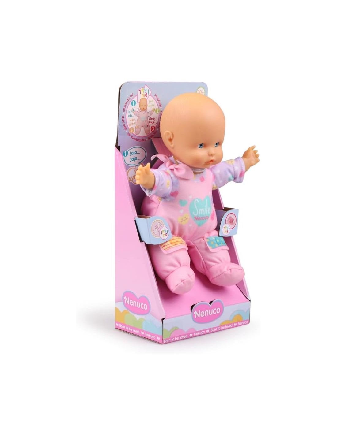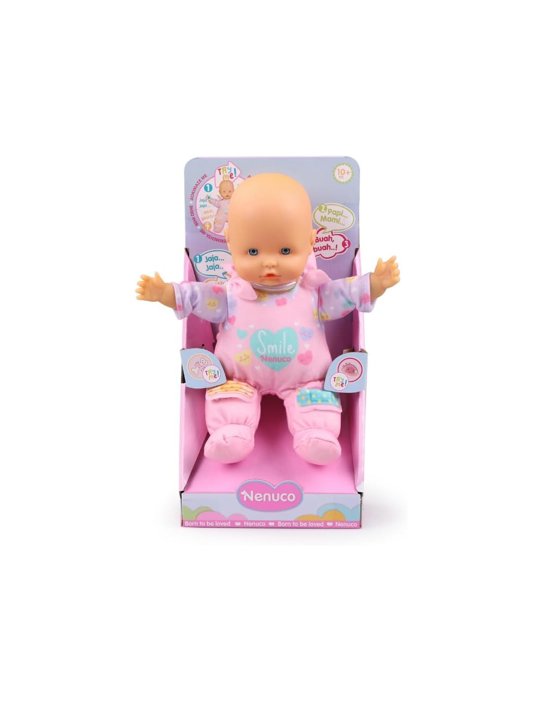 Nenuco habla y llora. Al presionar sus manos dice "papá" y "mamá", mientras que al tocar sus heridas cubiertas con tiritas, emite un llanto que hará que los niños quieran consolarlo