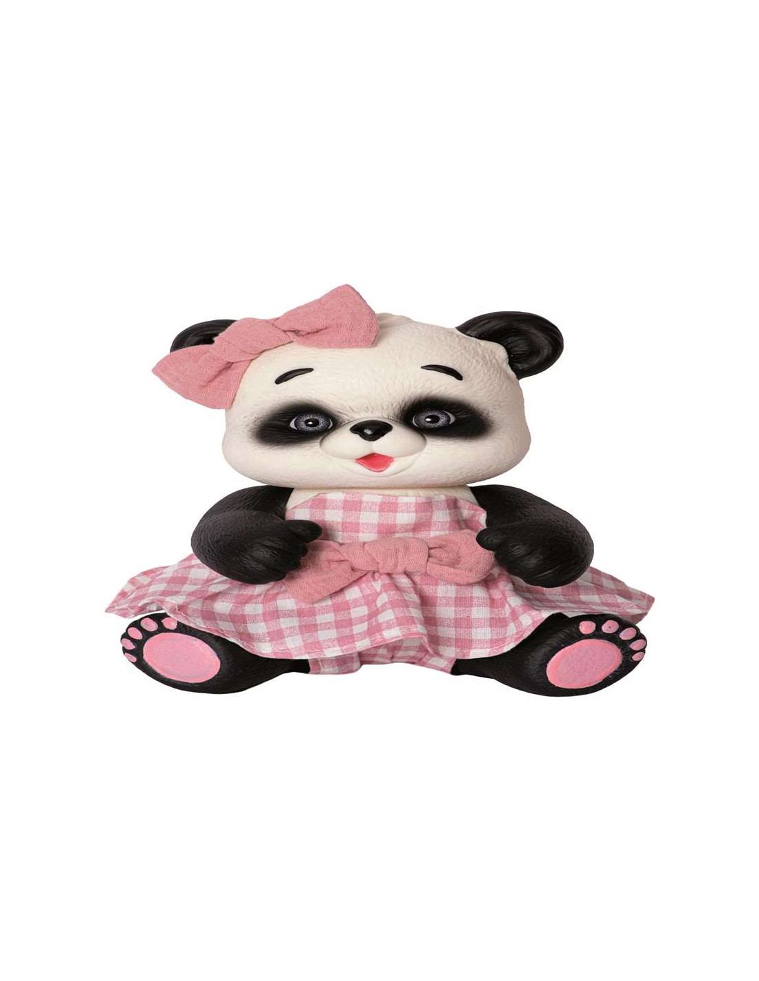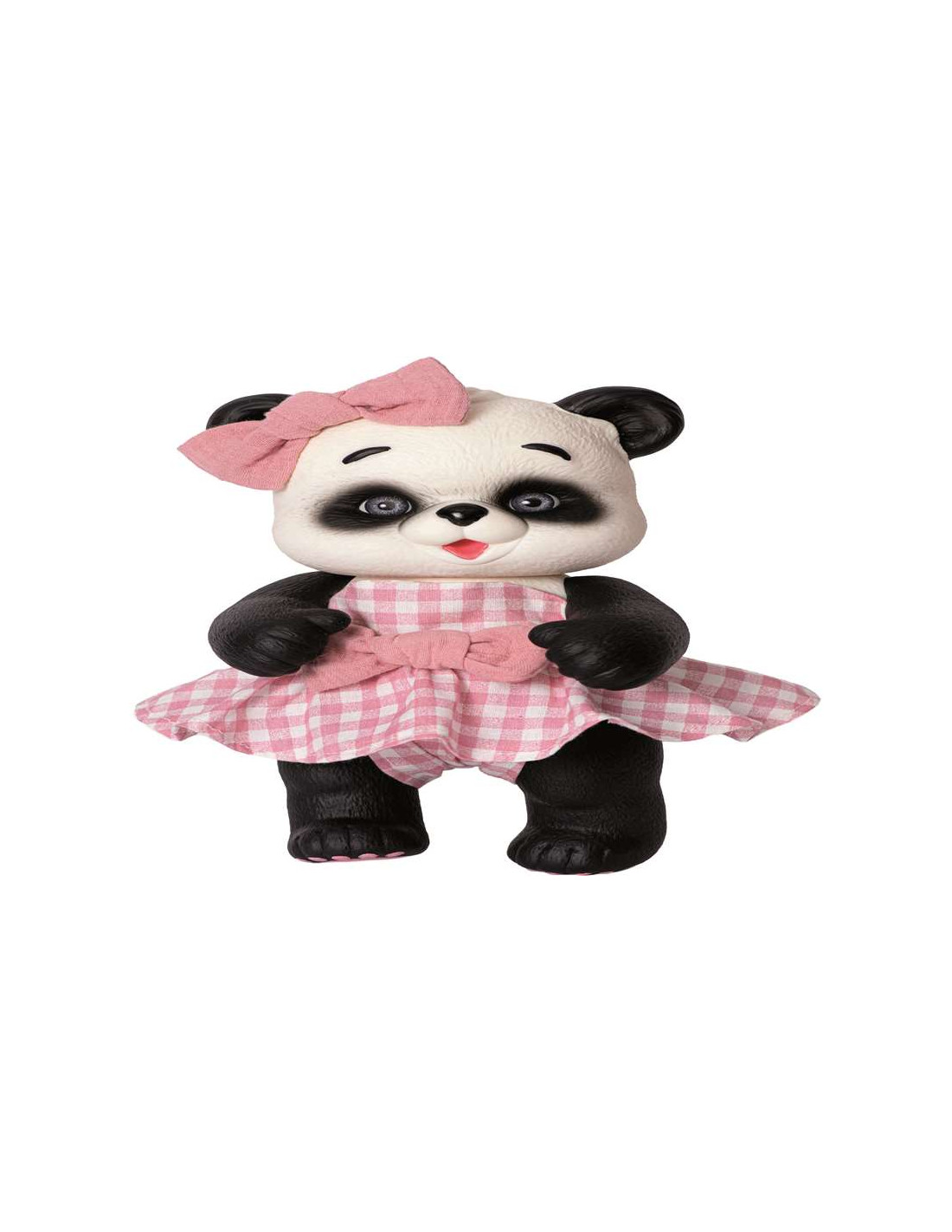RosaToysEl Oso Panda de Rosa Toys es una tierna figura con cuerpo de vinilo, diseñada para ser cuidada como un bebé; luce un encantador vestido de cuadros rosados con moño a juego y detalles adorables en las patas y rostro, ideal para fomentar el juego afectivo y la ternura en los más pequeños; mide 25 cm y no requiere baterías.