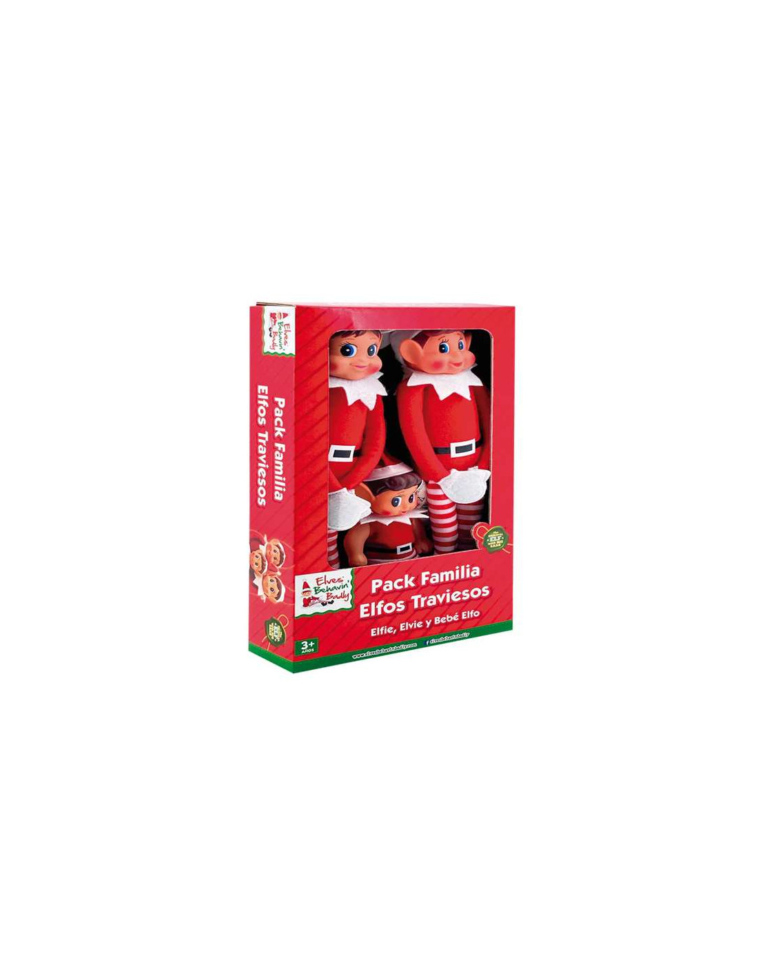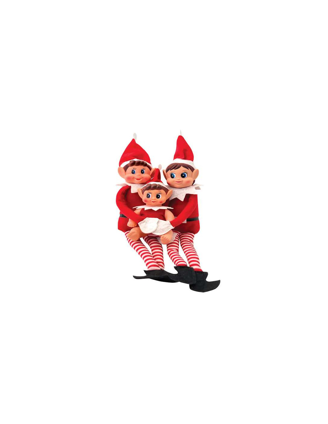 Incluye dos elfos grandes (mamá y papá) y un elfo bebé en una sola pieza que refleja ternura, complicidad y muchas posibilidades creativas para decorar y jugar durante toda la temporada navideña.