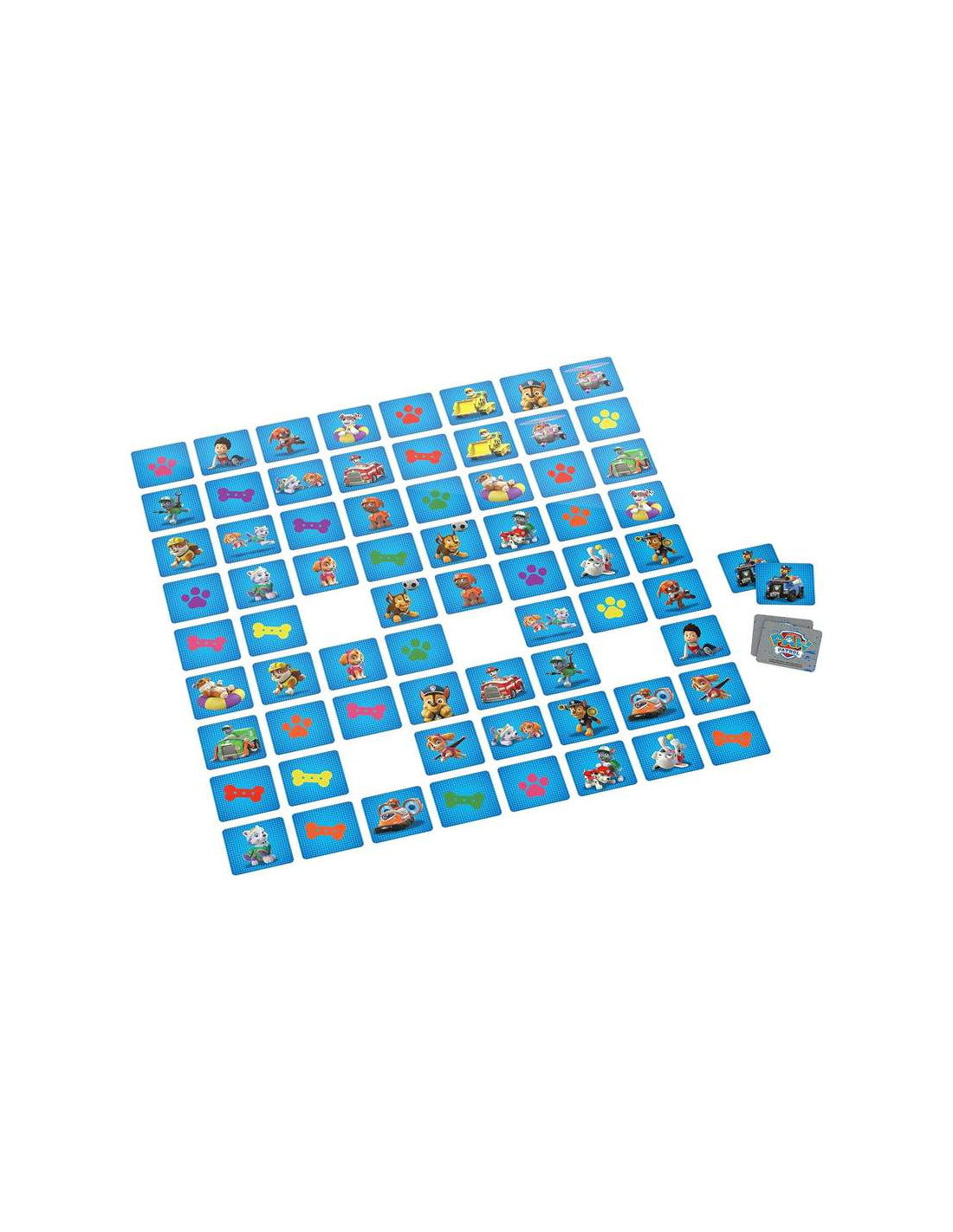 UN JUEGO DE MESA NIÑOS SENCILLO: jugar al juego de memoria es muy sencillo: pon las 72 cartas que contiene el maletín boca abajo. El jugador más joven empieza dando la vuelta a 2 cartas de las figuras Patrulla Canina. Si las imágenes son idénticas, el jugador gana las 2 cartas y puede dar la vuelta a 2 nuevas cartas. El ganador es la persona que haya reunido el mayor número de pares. ¿Quién podrá encontrar más pares?