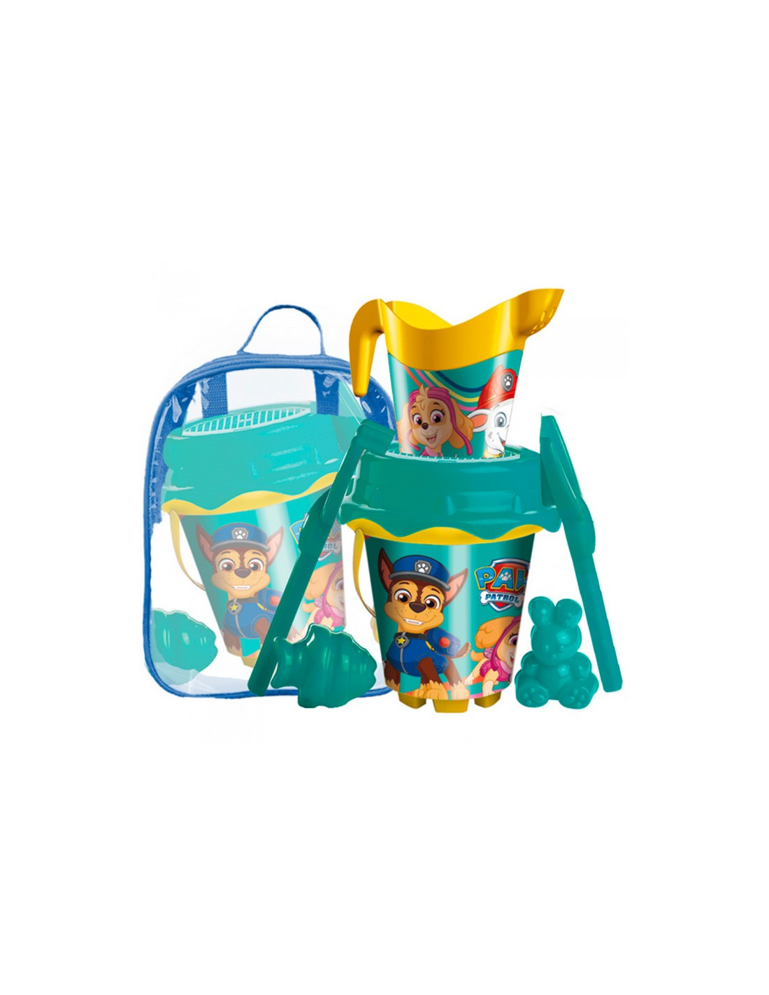 Unice ToysIncluye mochila, cubo con forma de castillo, cedazo, pala, rastrillo, regadera y dos moldes de arena.