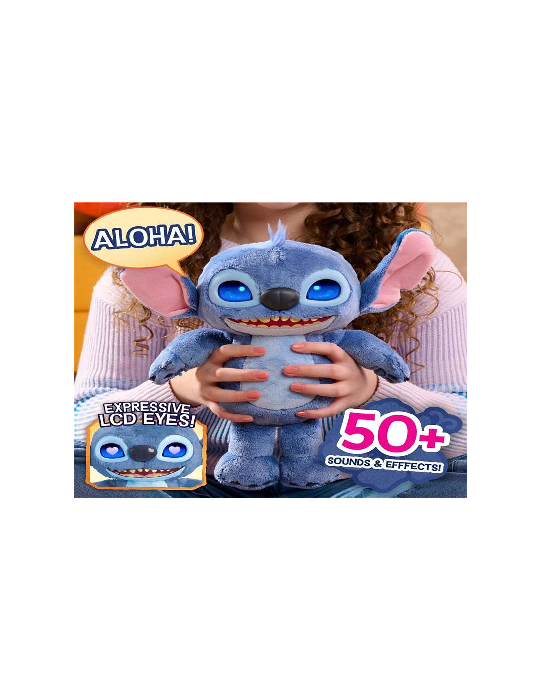 Con efectos visuales y sonidos LCD: Inspirado en la película de Disney Lilo & Stitch, el peluche interactivo Stitch Many Moods de Disney da vida a la adorable personalidad de Stitch con ojos animados e iluminados y más de 50 sonidos y frases.