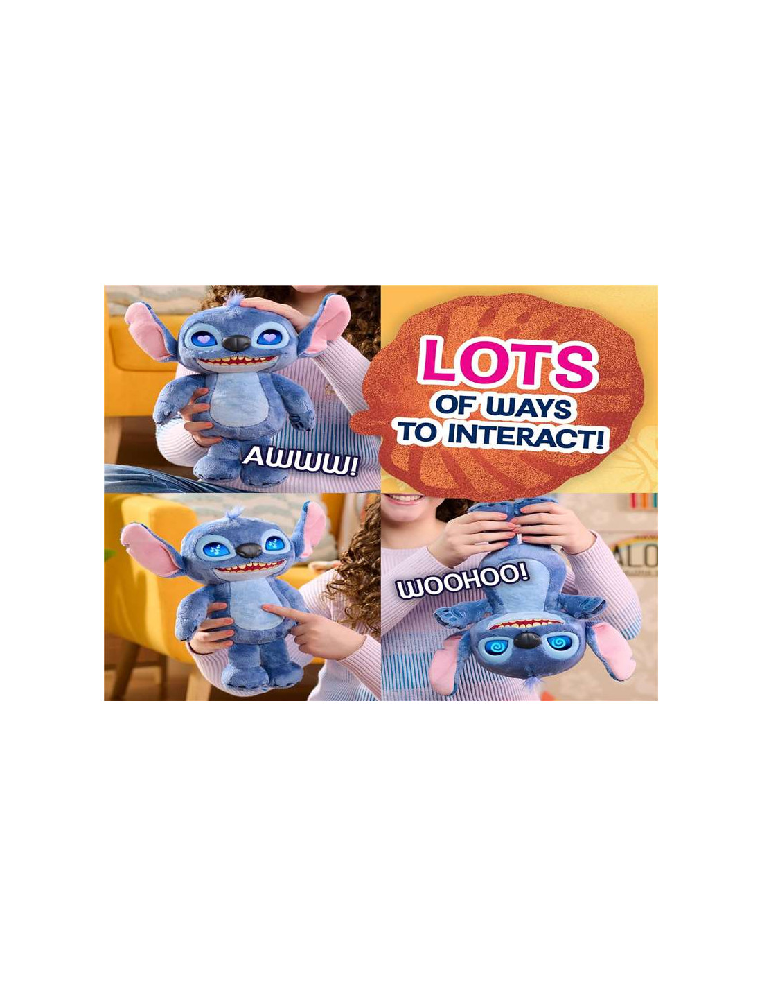 Tontas travesuras alienígenas: Sujeta a Stitch boca abajo y muévelo para escuchar divertidos efectos de sonido y ver reacciones animadas en sus ojos, ¡pero no te pases o se pondrá de mal humor!